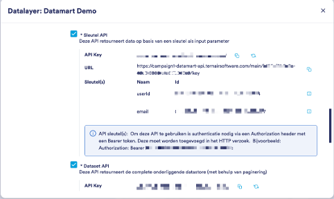In het CDP-gedeelte van Ternair is het mogelijk om Datamarts te maken. Iedere datamart heeft standaard de optie om deze te ontsluiten via een REST API.