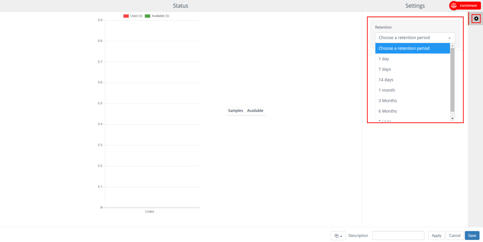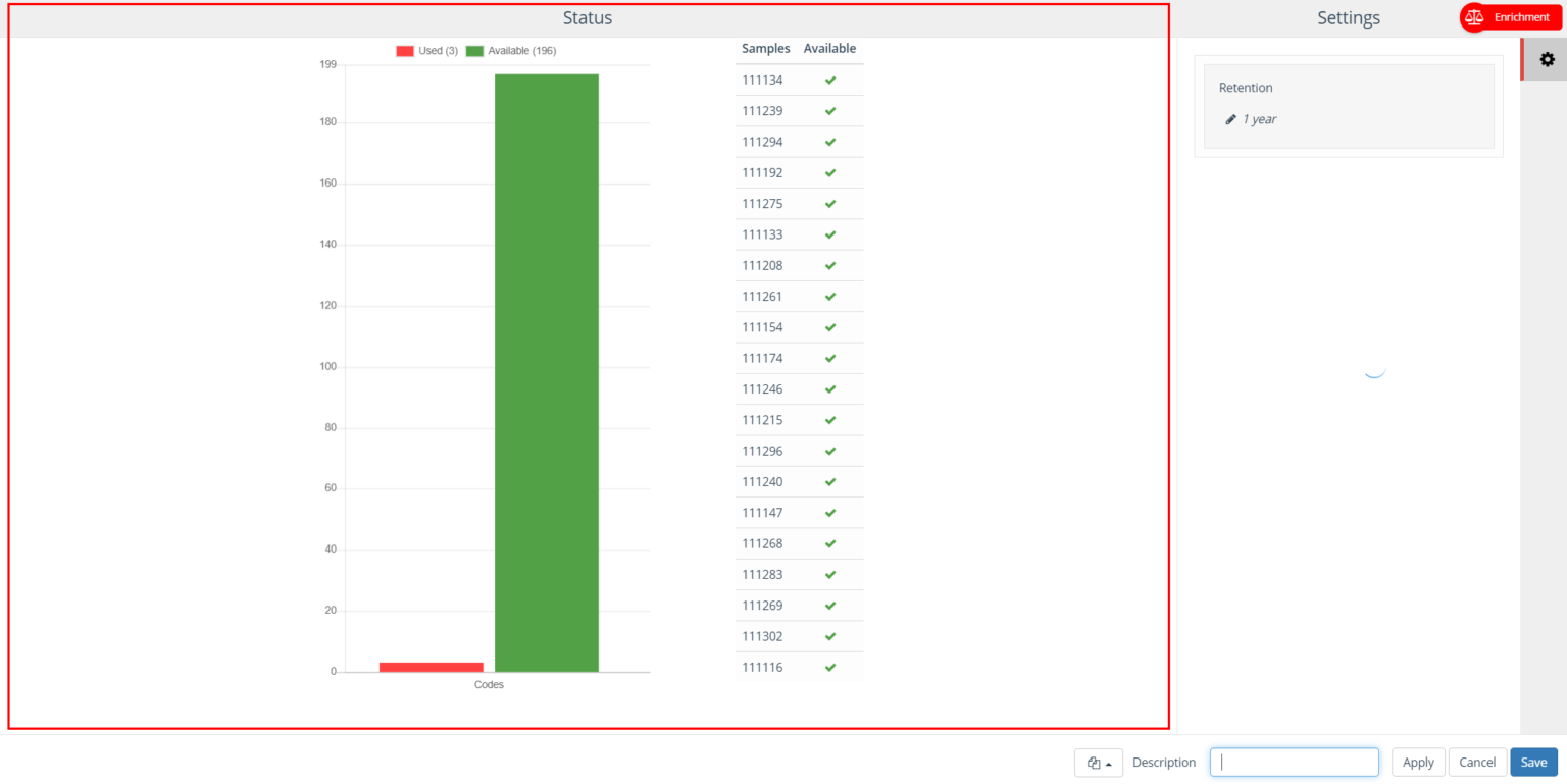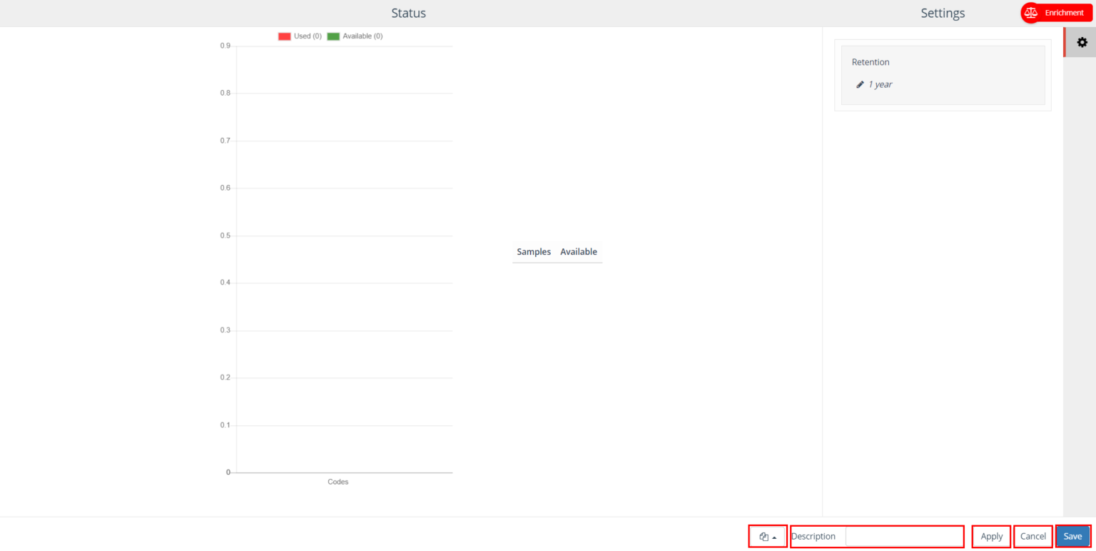 On the left side, the status of the enrichment codes is displayed. On the right-hand side, you will find the settings.