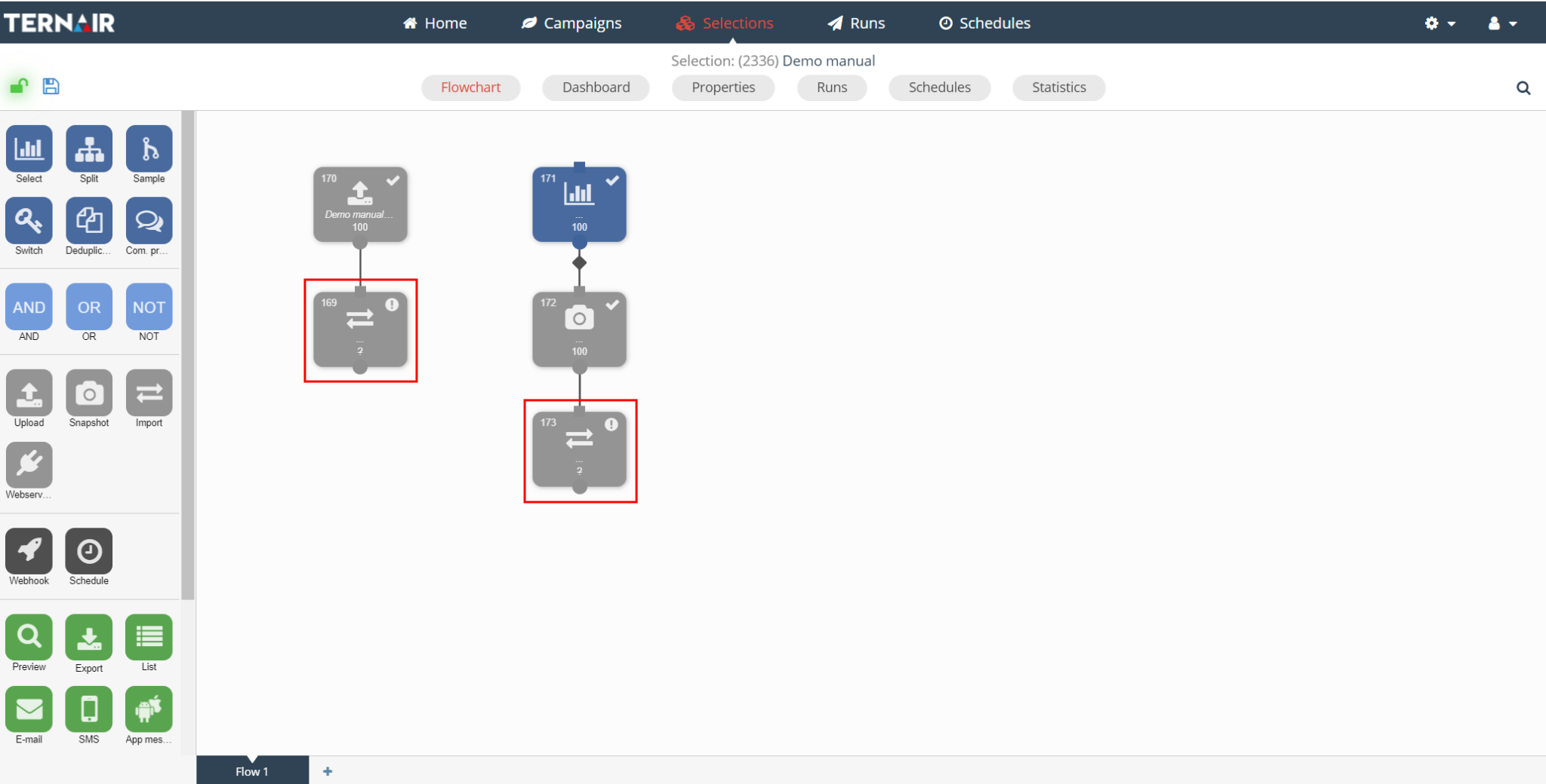 Applicate | Clicking the 'apply' button saves the preliminary settings for the selection block. |