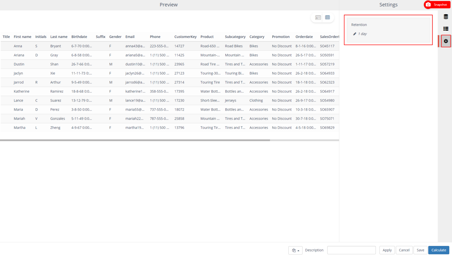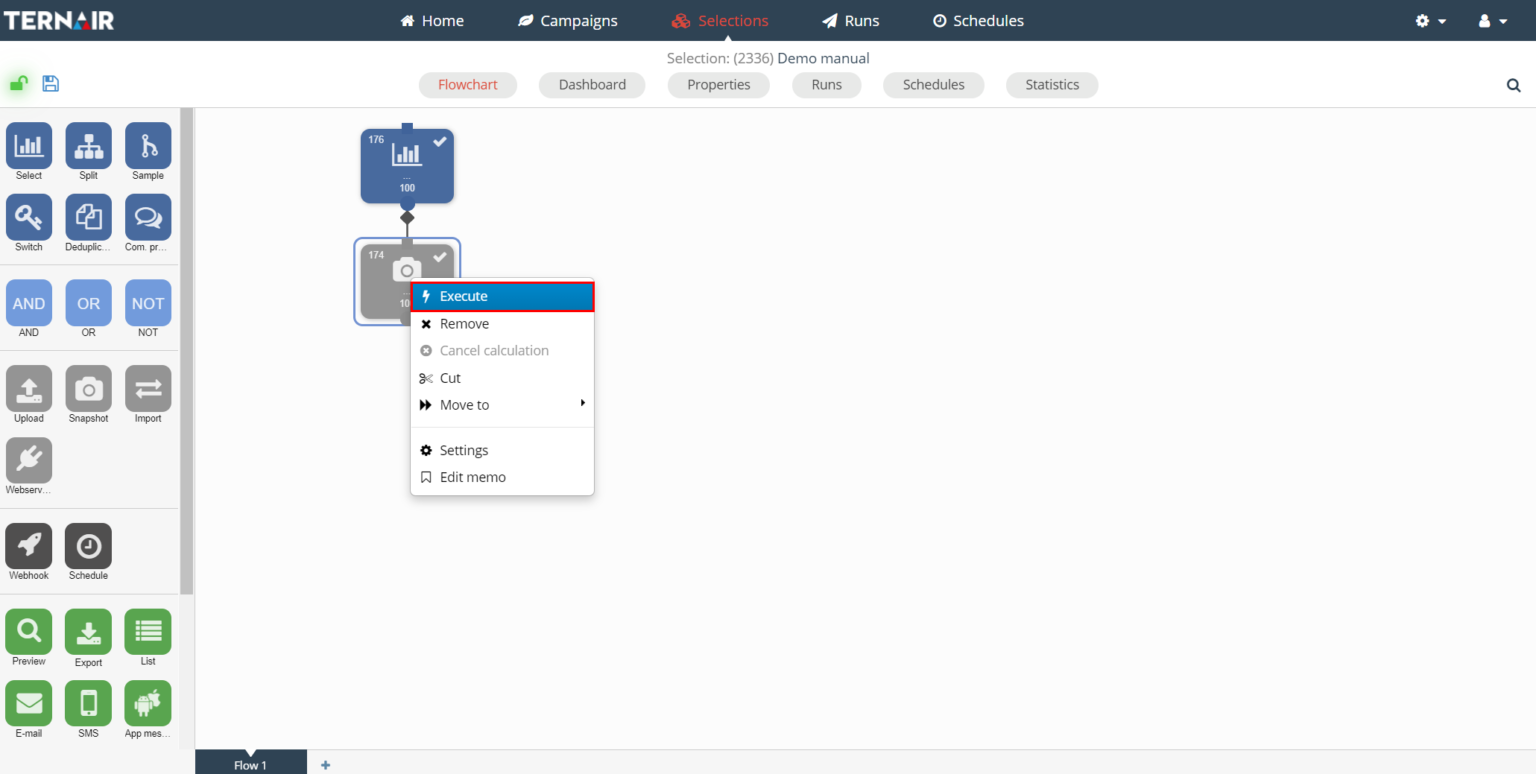 As a final step, the snapshot must be executed. Select the snapshot block and right-click and then click "execute. Executing the snapshot will populate the internal table in Ternair with data.