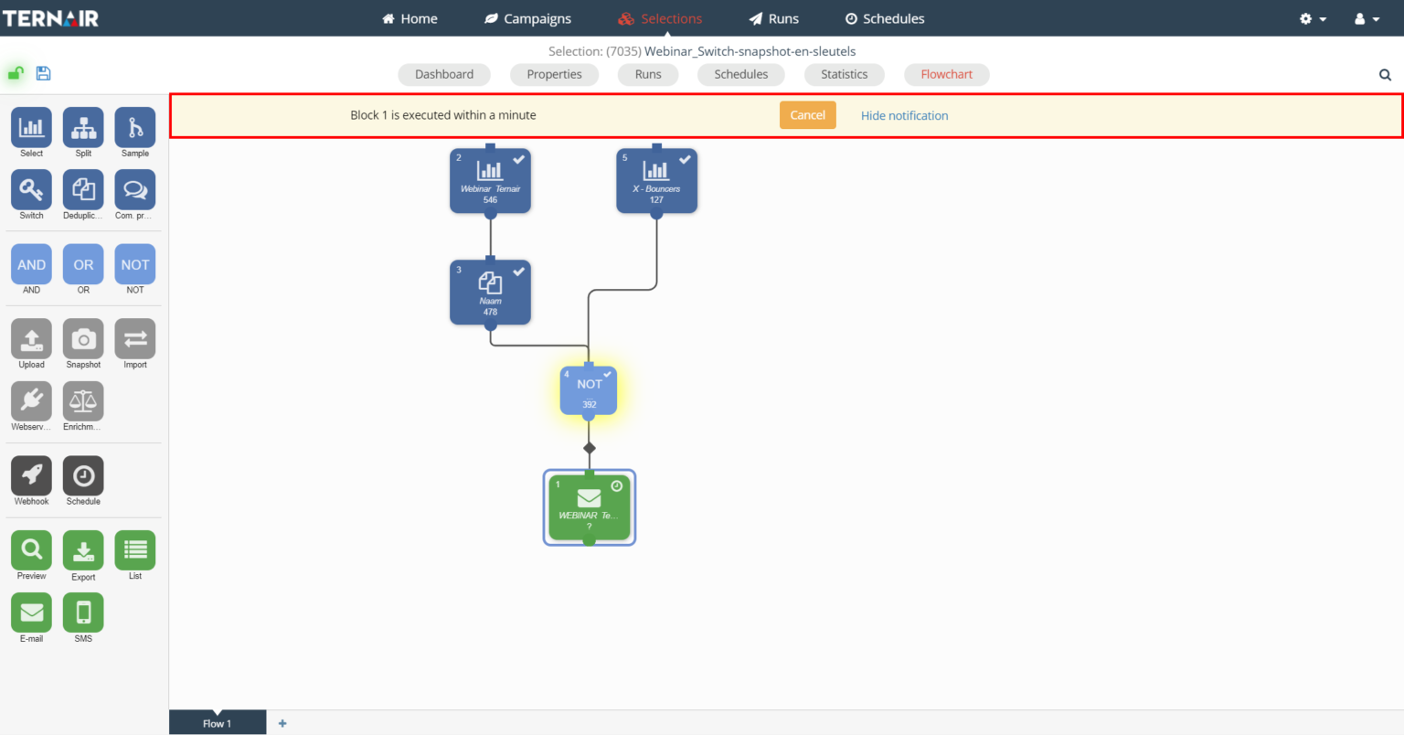 As a user, you have the option to stop the scheduled execution by clicking the Cancel button.