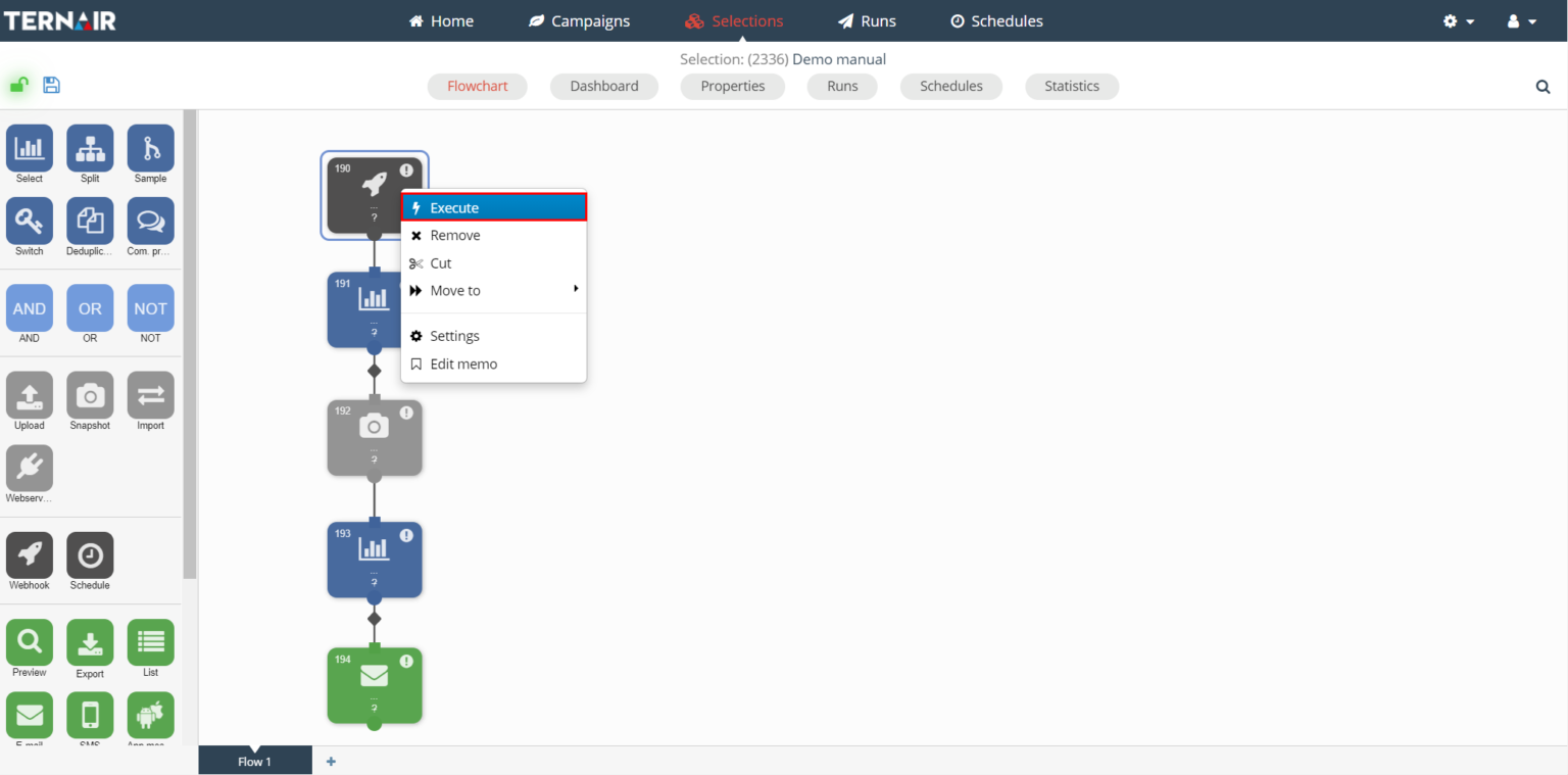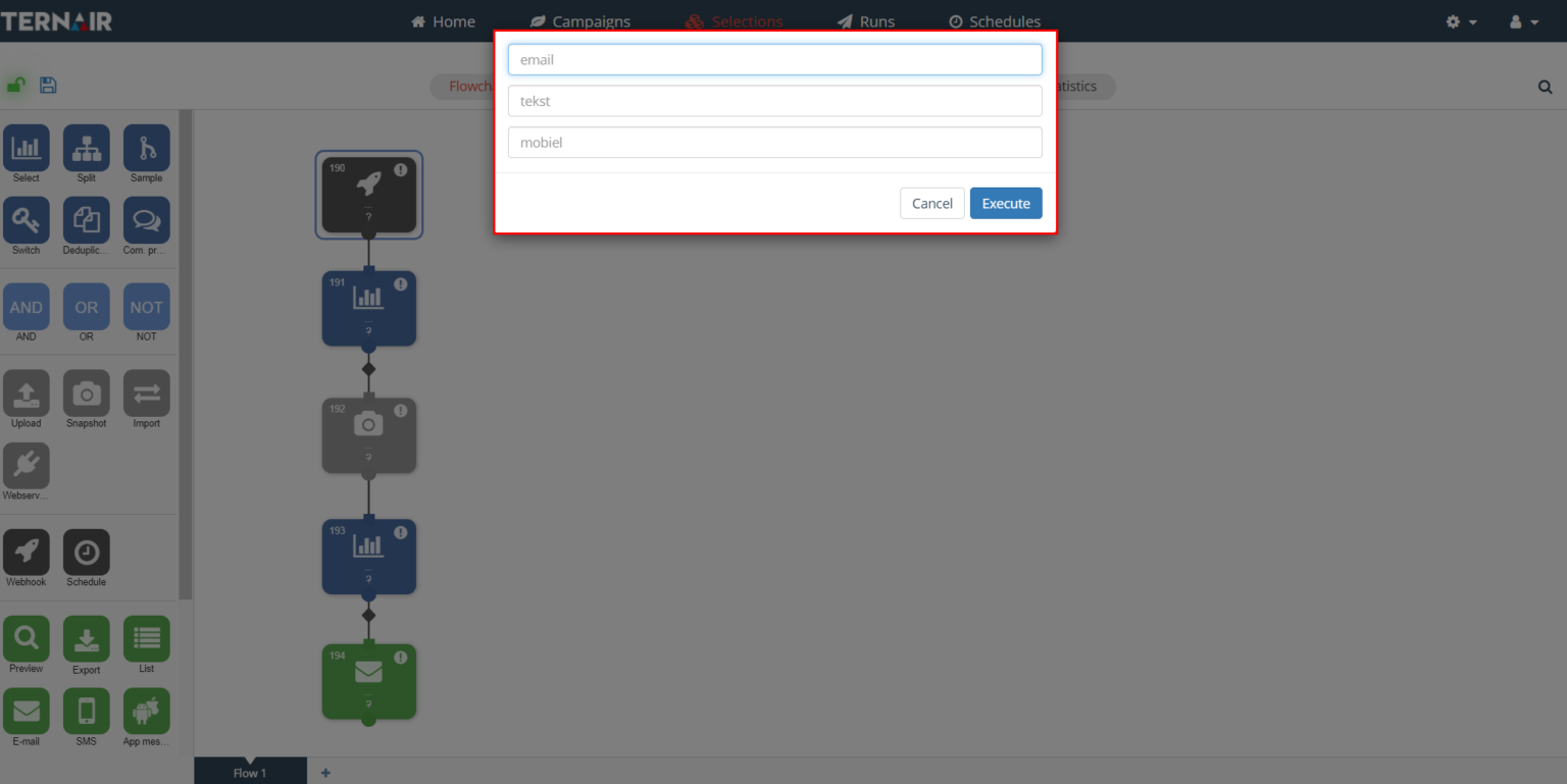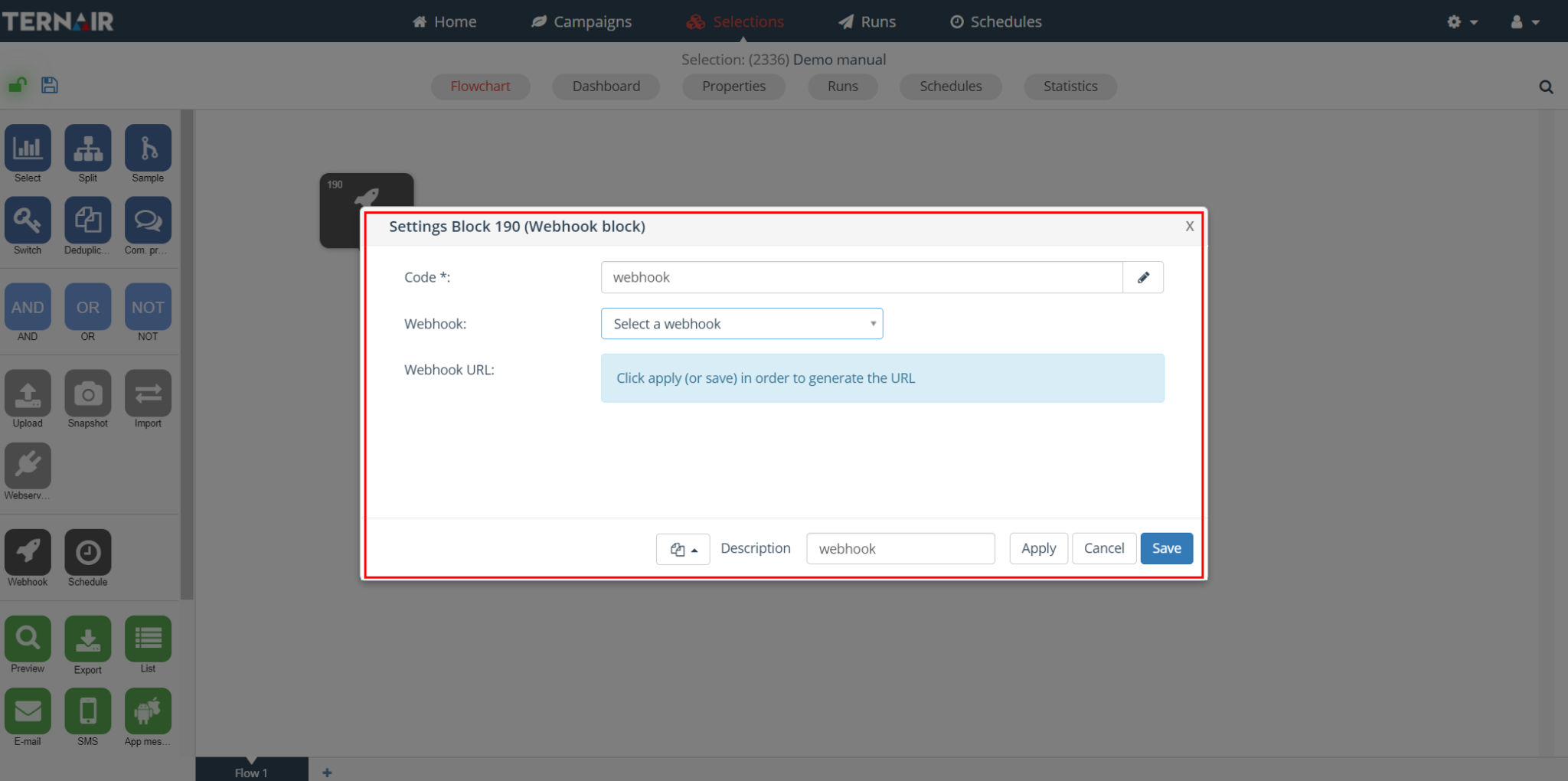 With a webhook block, a third-party service can trigger a flow in Ternair via a URL.