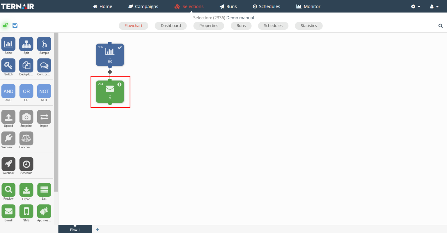 First drag an email block to the selection screen and connect it to another selection block that serves as input.