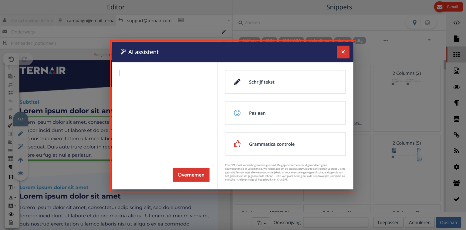 When you are satisfied with the text, click on the 'Adopt' button. The text is then copied into the email.
