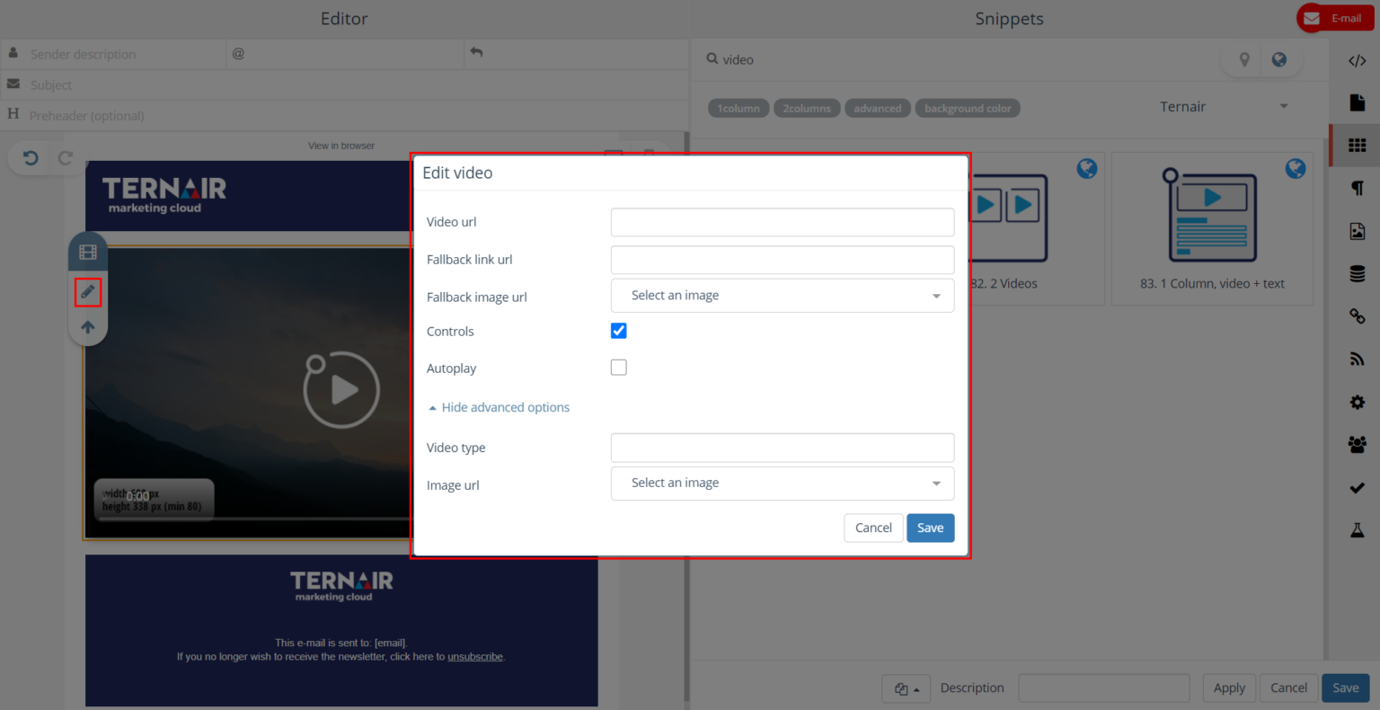 Fallback link url | The anchor link in case an email client does not support videos. |