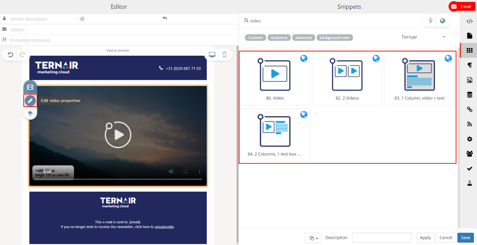 Video url | Select video. Please note that the video snippet does not support youtube videos whose direct url you do not have. |