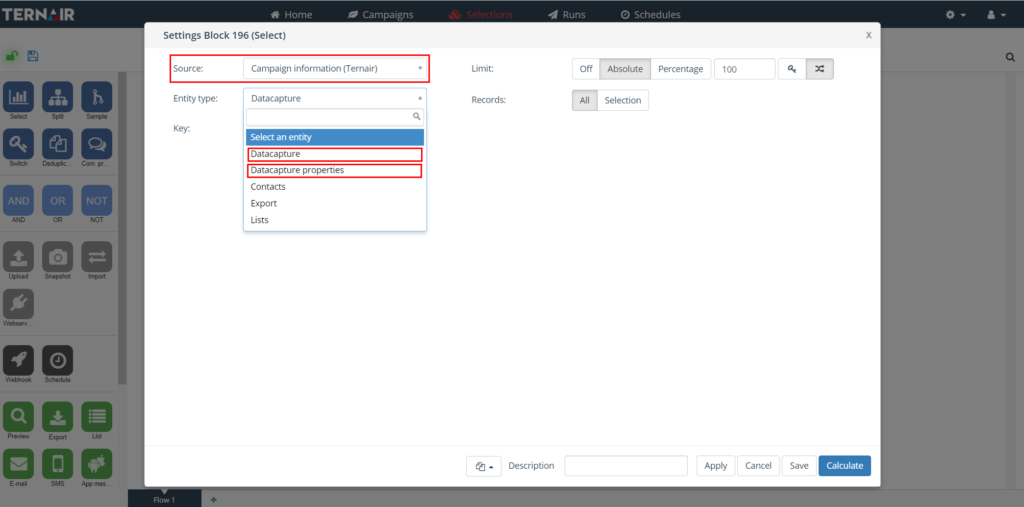 Data collected via other fields is available in real-time in the entity 'Data capture properties' under the source 'Campaign Information (Ternair)'.