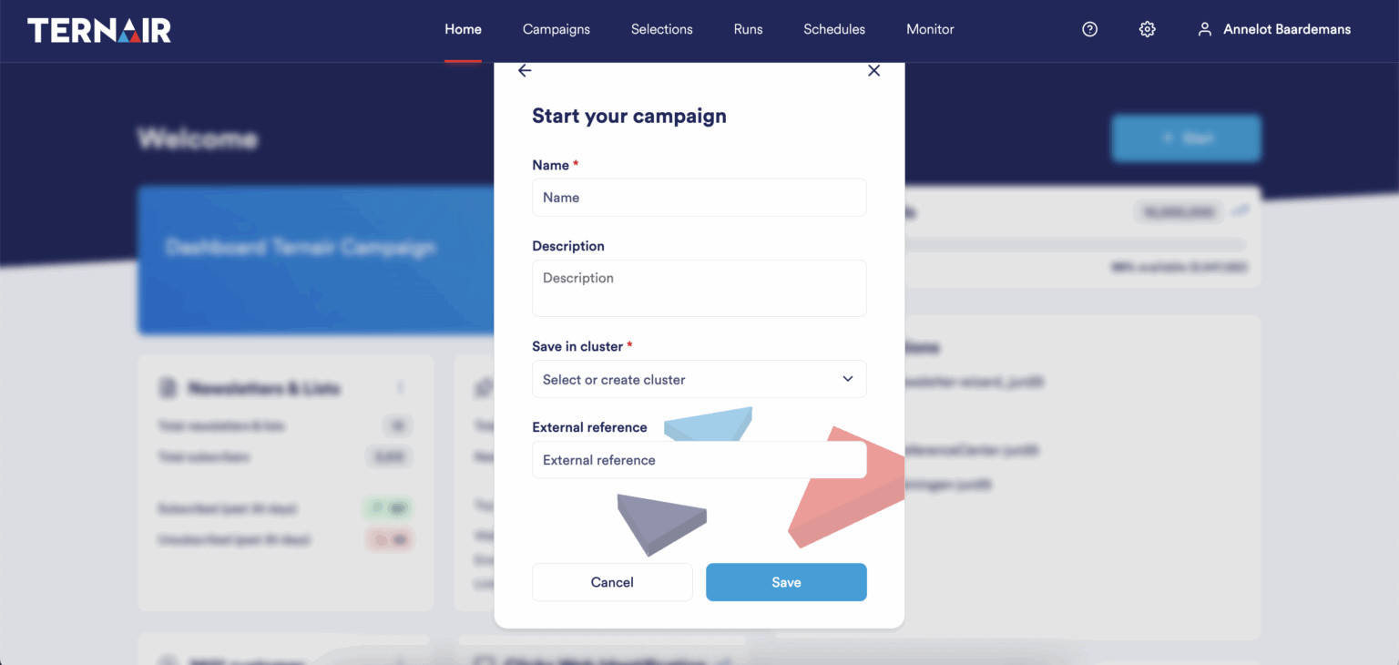 Fill in the newsletter name and description and select a campaign. Optionally, you can include an external reference.