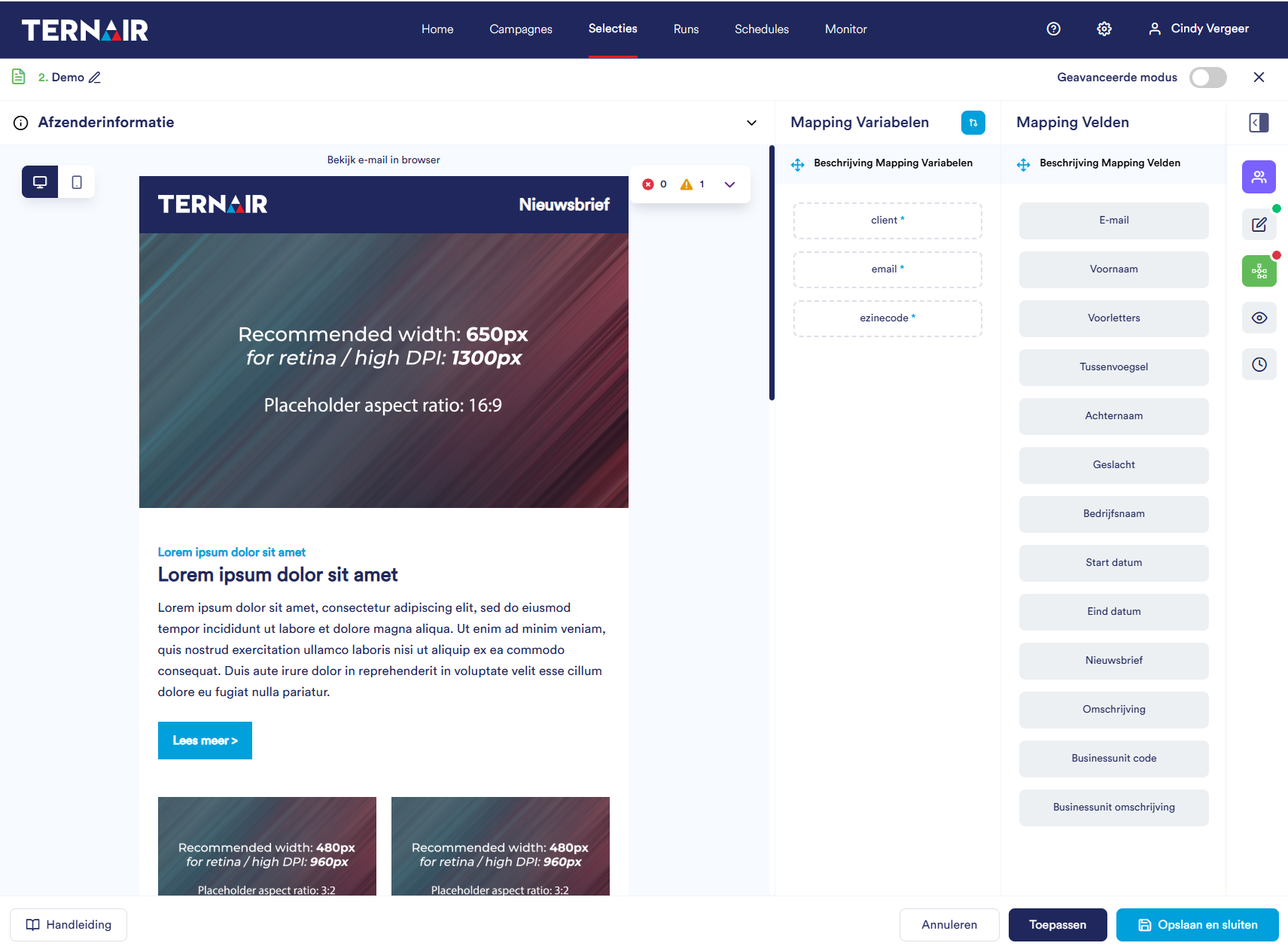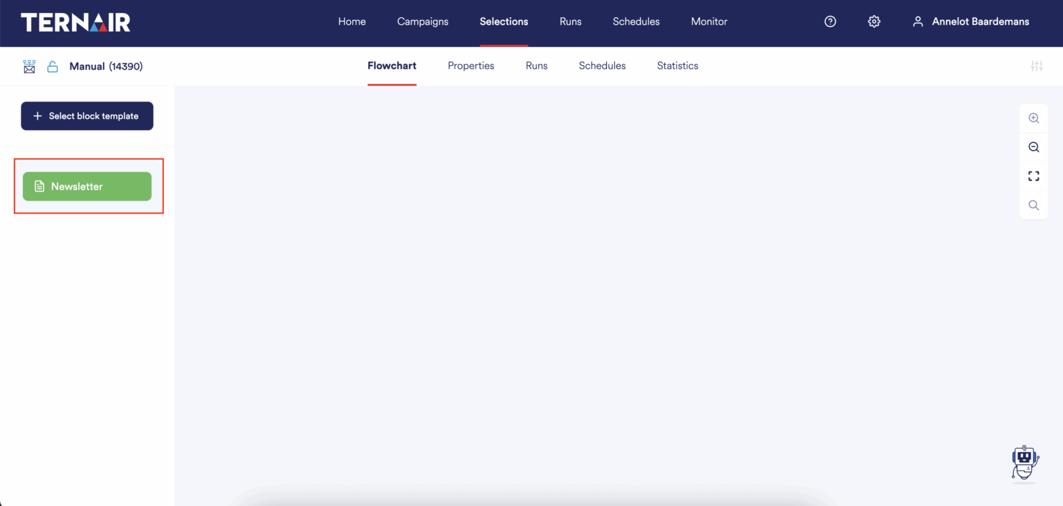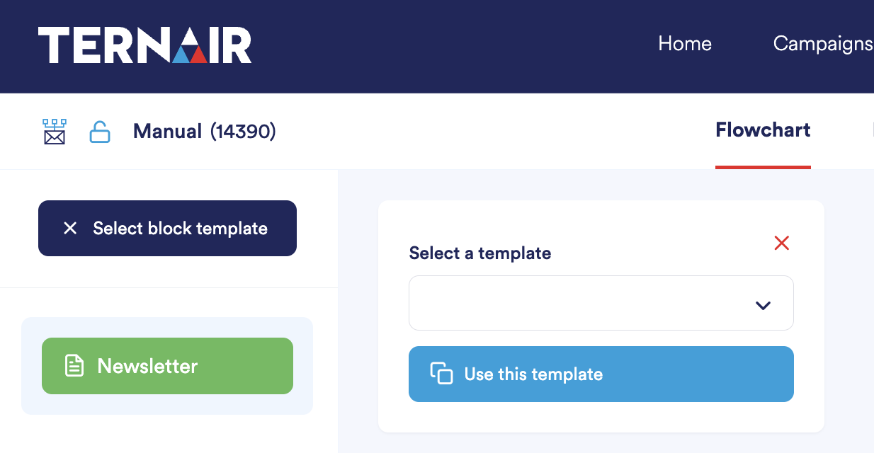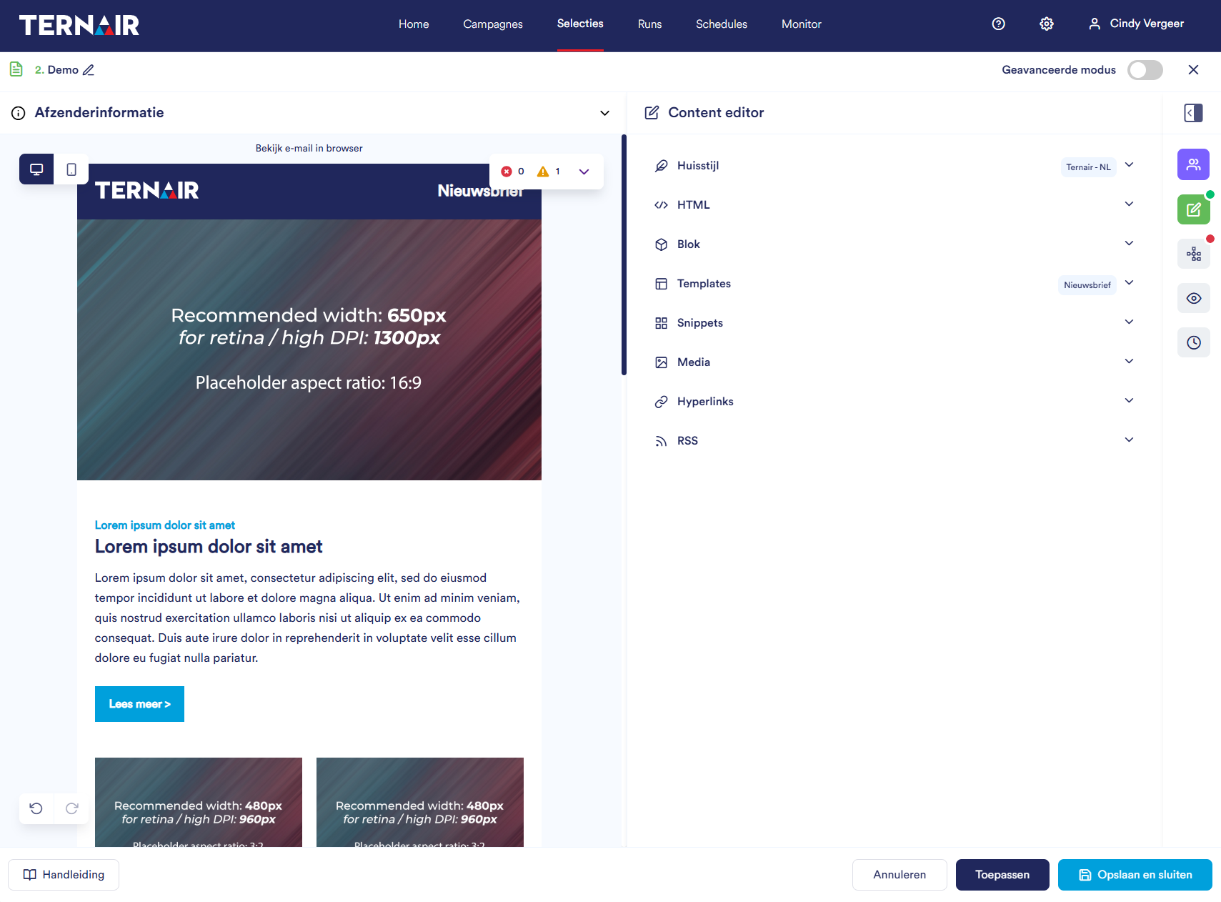 Select a template here and add the corresponding house style to it. You can also choose not to use a template and build your mail with snippets.