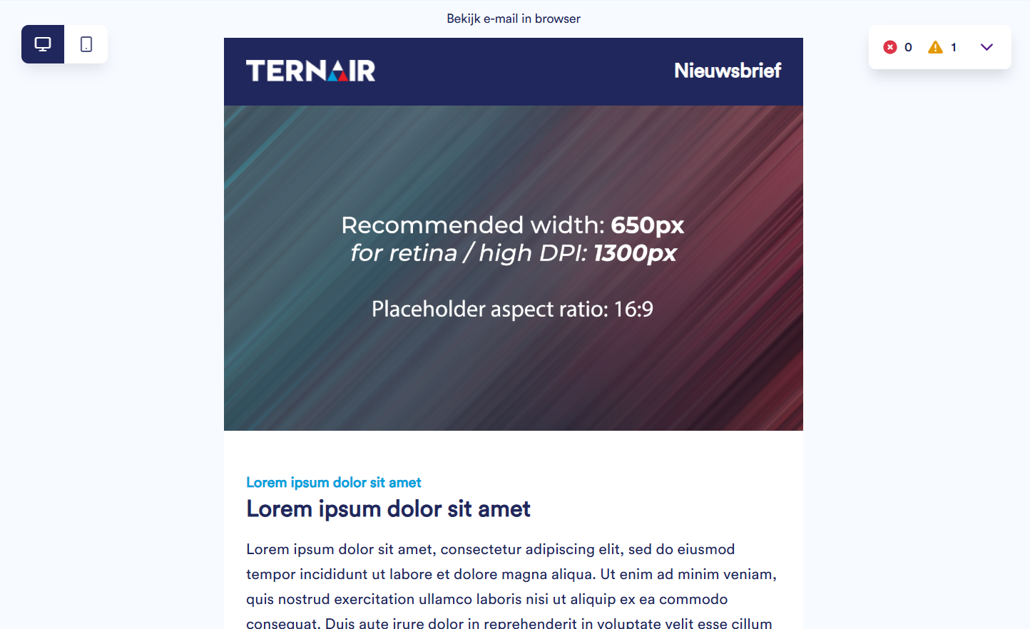 Click on the 'Desktop' or 'Mobile' icon to preview the newsletter on your desktop or mobile device.