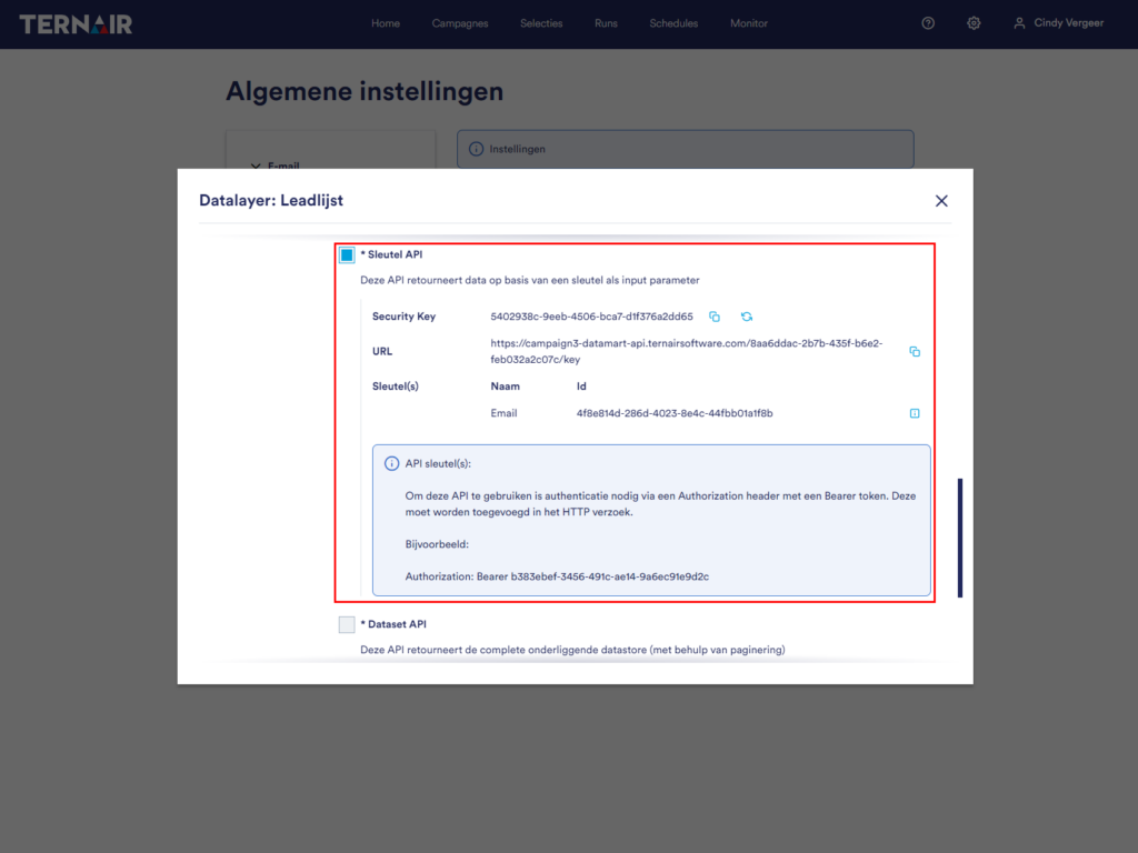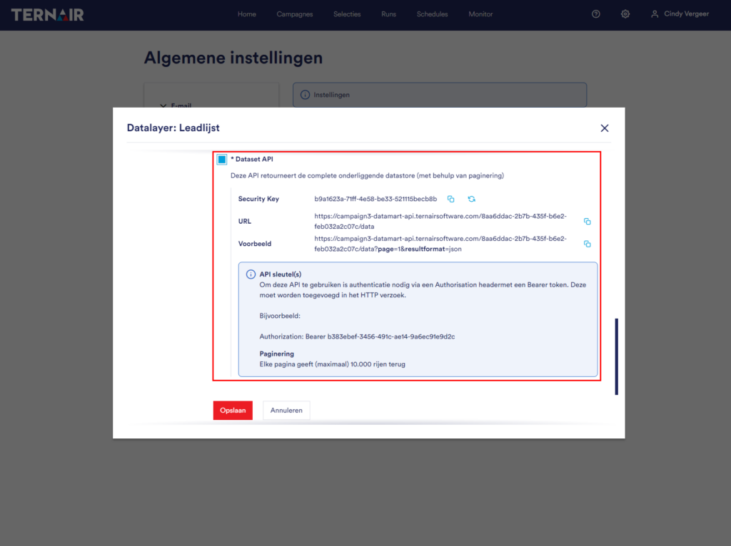 Example URL: https://campaign3-datamart-api.ternairsoftware.com/e81c3378-0006-444c-bda3-d0e5f348f077/data?page=1&resultformat=json&fieldnames=pascalcase&pagesize=100