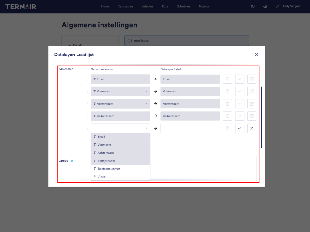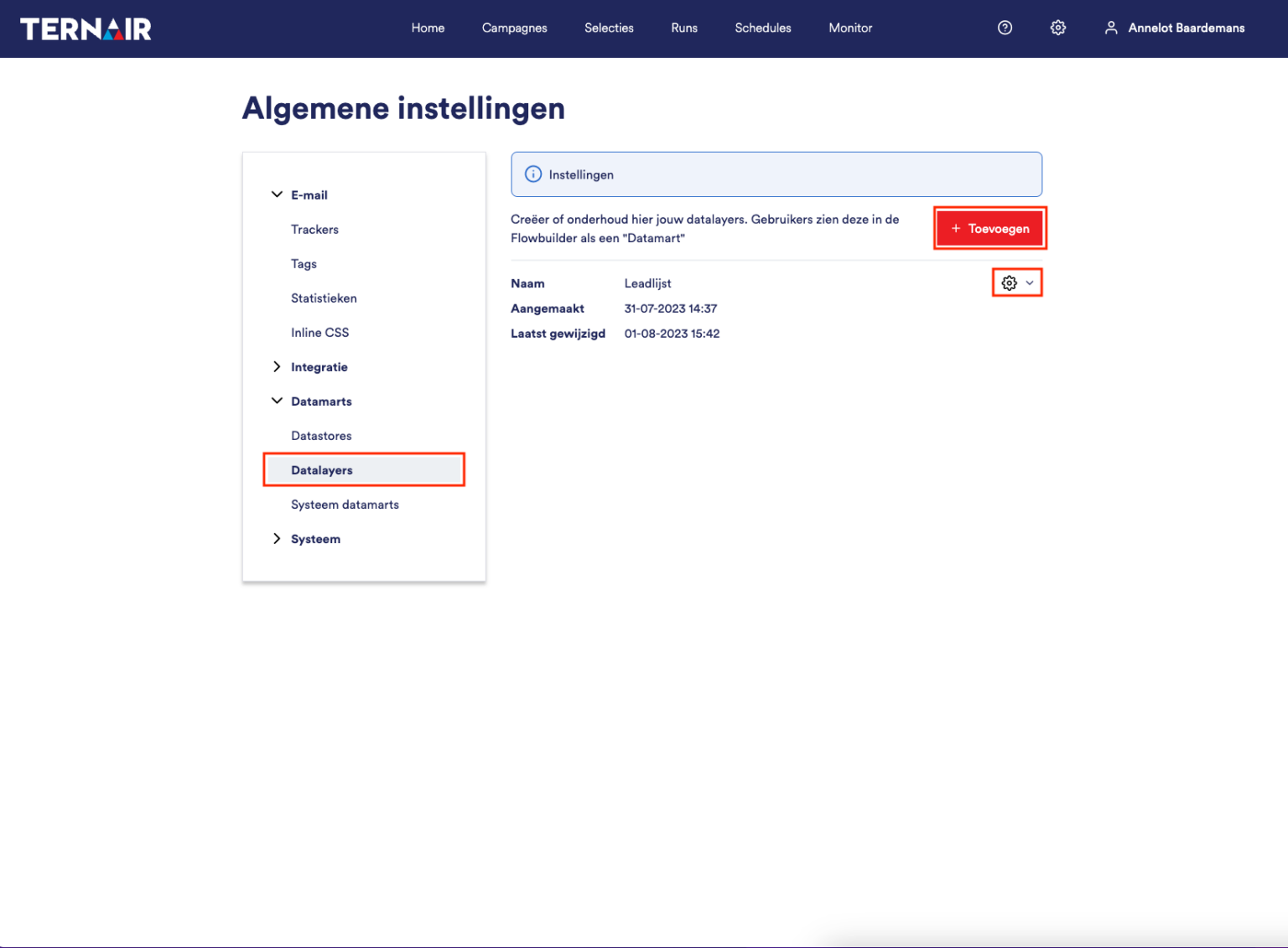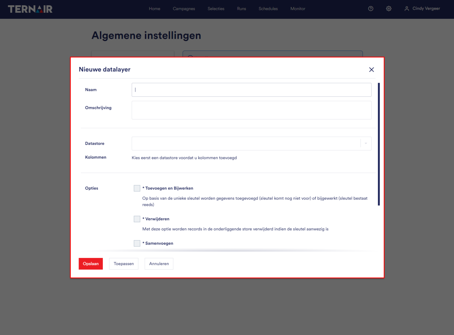 When you have defined everything, save the datalayer by clicking the 'Save' button.