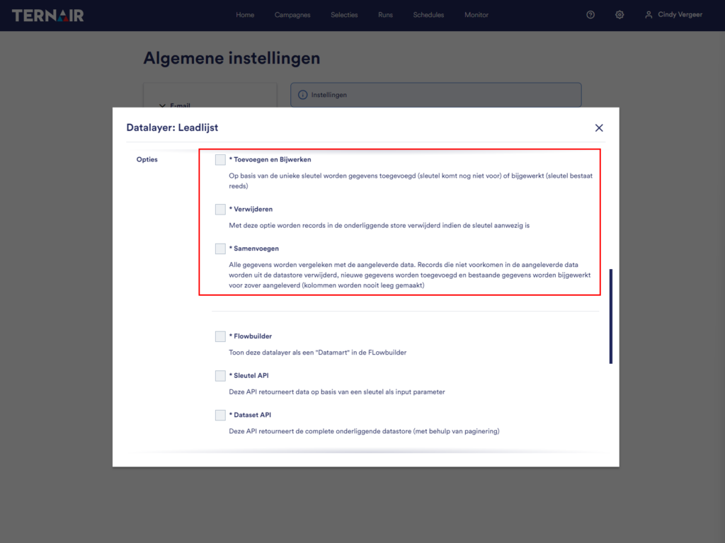 Please note: that when copying a datalayer, the options are not included, they must be reselected.