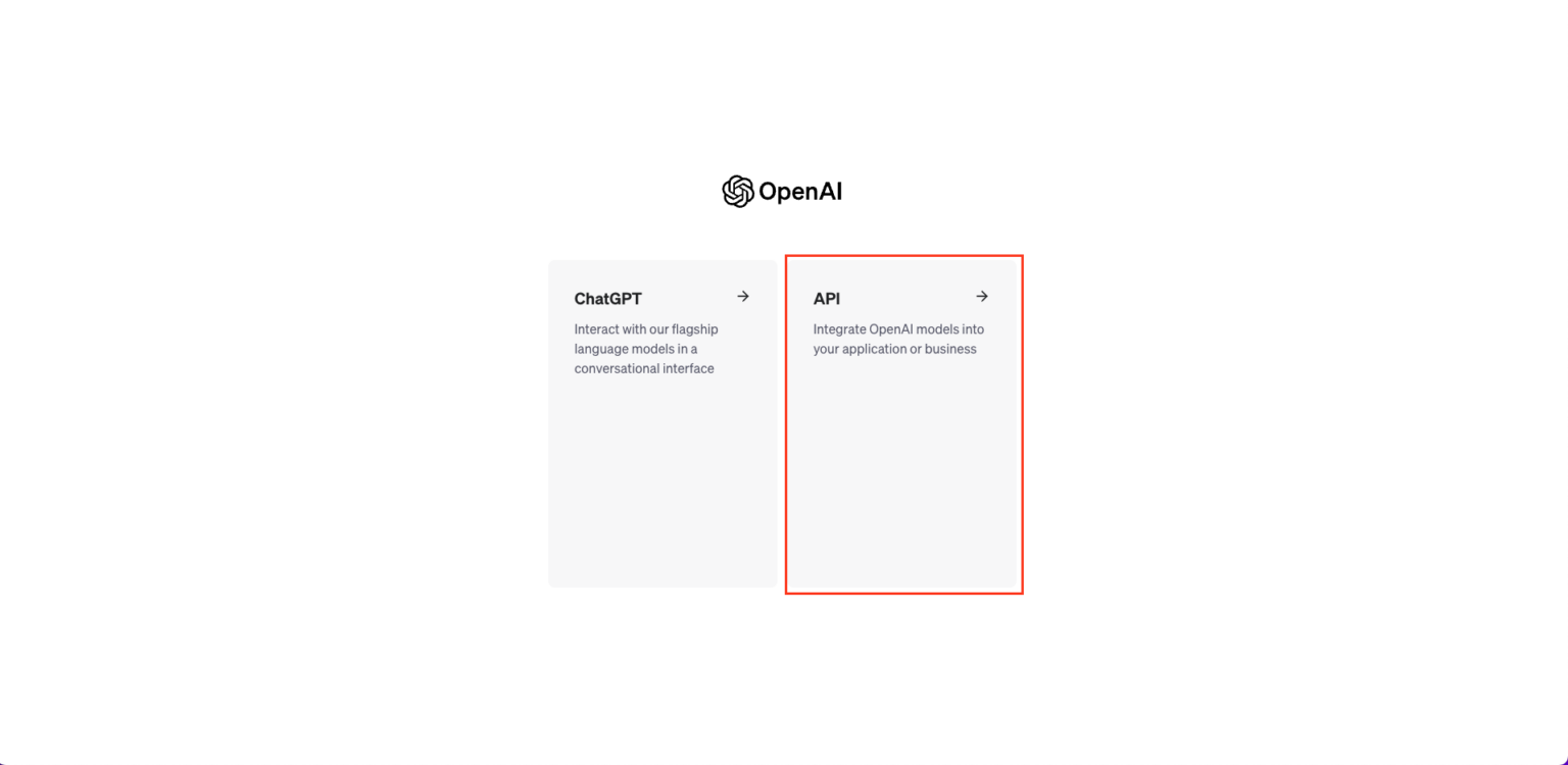 To do so, go to https://chat.openai.com/, login (or create an account) and choose API.