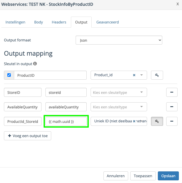 Additional settings of the web service block for Body, Headers, Output and Advanced can be set via the other tabs.