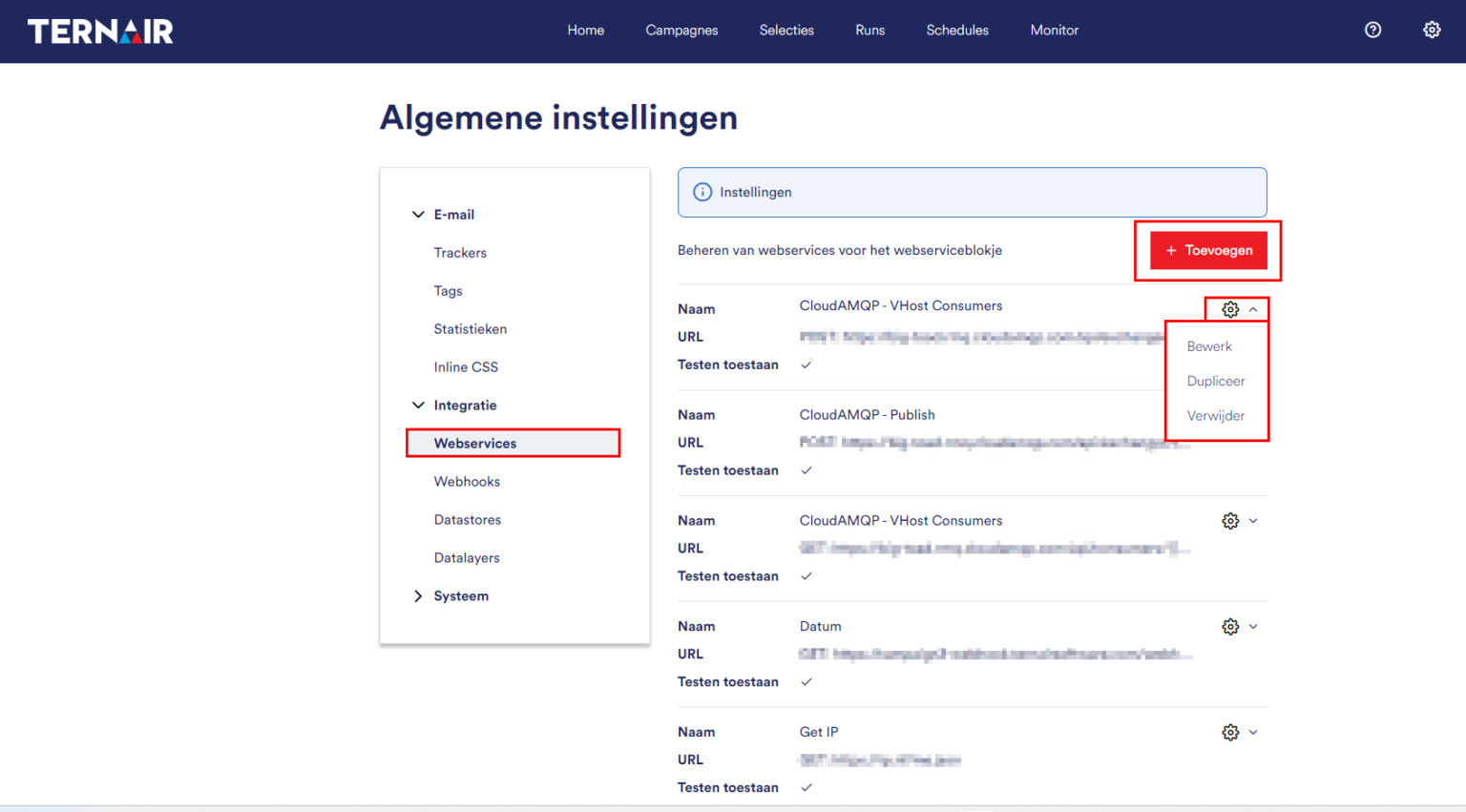 Click the 'Add New Web Service' button to add a new web service. Web services that have been previously added are visible on this tab. The web service can be modified and deleted by clicking the gear icon.