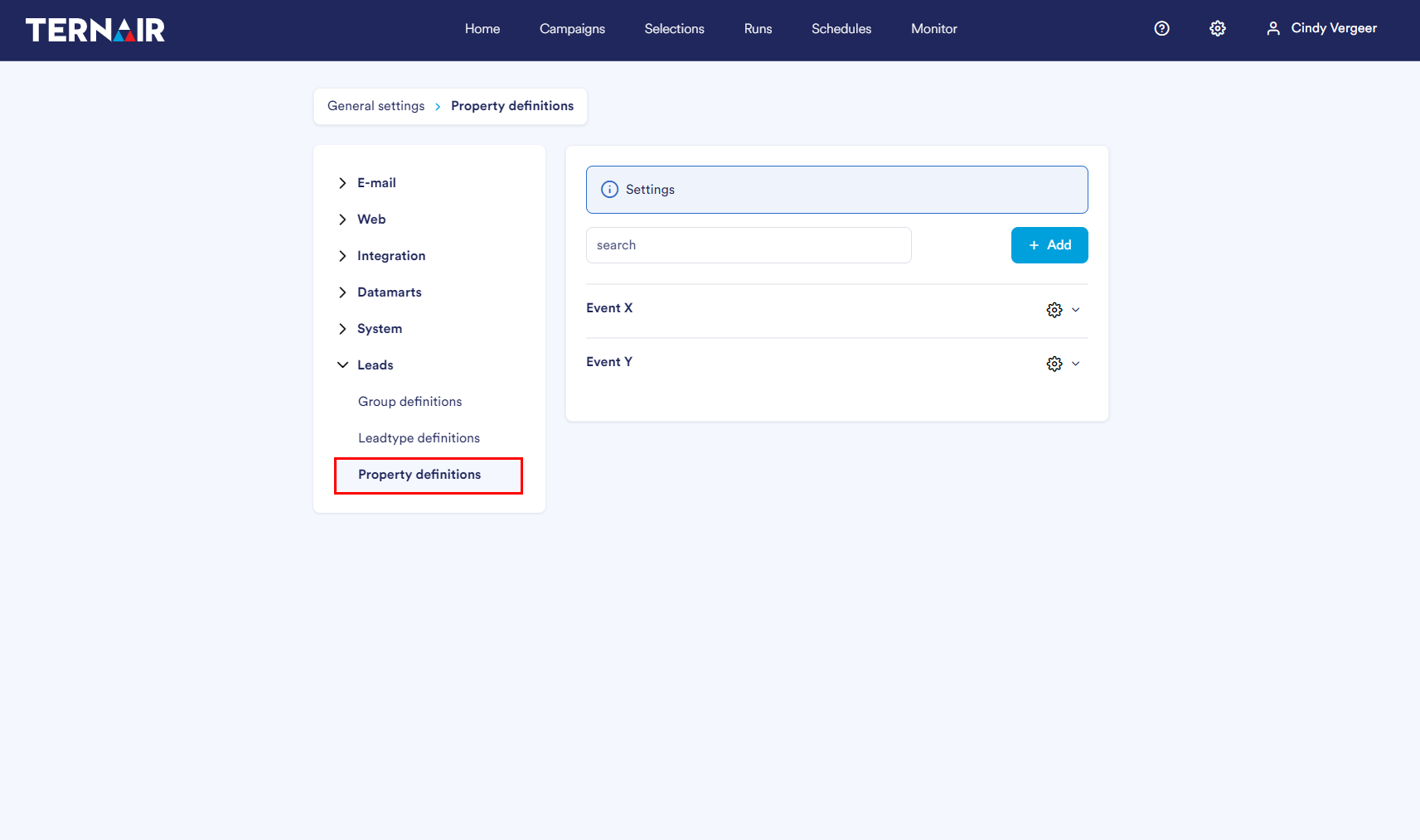 Property definitions that have been added before are visible on this tab. By clicking on the cogwheel icon , you can edit, duplicate or delete an existing group definition.