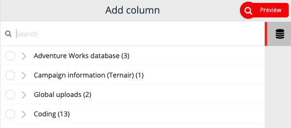 For example, if the source E-mail statistics (Ternair) is disabled for a user, this source will not be displayed in, for example, the select block or while creating a mapping in an output block.