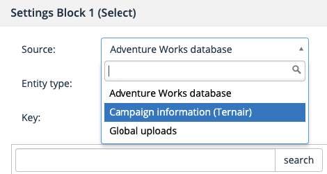 Within Ternair, the available resources in the select block for a user in the Editors user group are now different than for a user who has access to all resources.