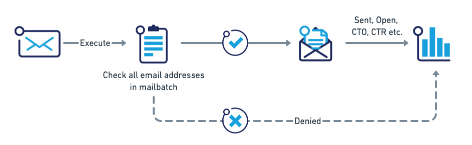 E-mail addresses that meet these criteria are removed from the mailing and reported as "rejected" in the statistics. If necessary, the status of the email address is updated.