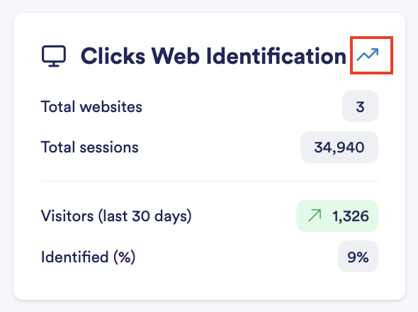 In the widget Identification you can see, for each selected website, the number of identified sessions, which are sessions where the email address is known and the number of soft-identified sessions (email address is known and indication soft = true).
