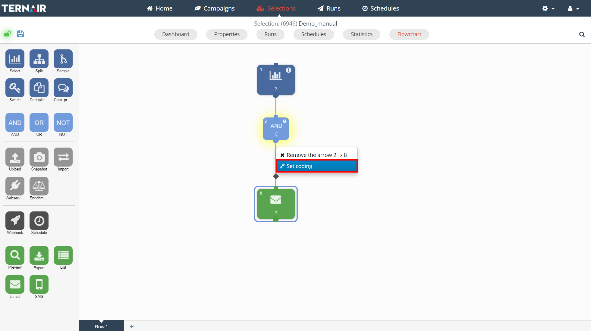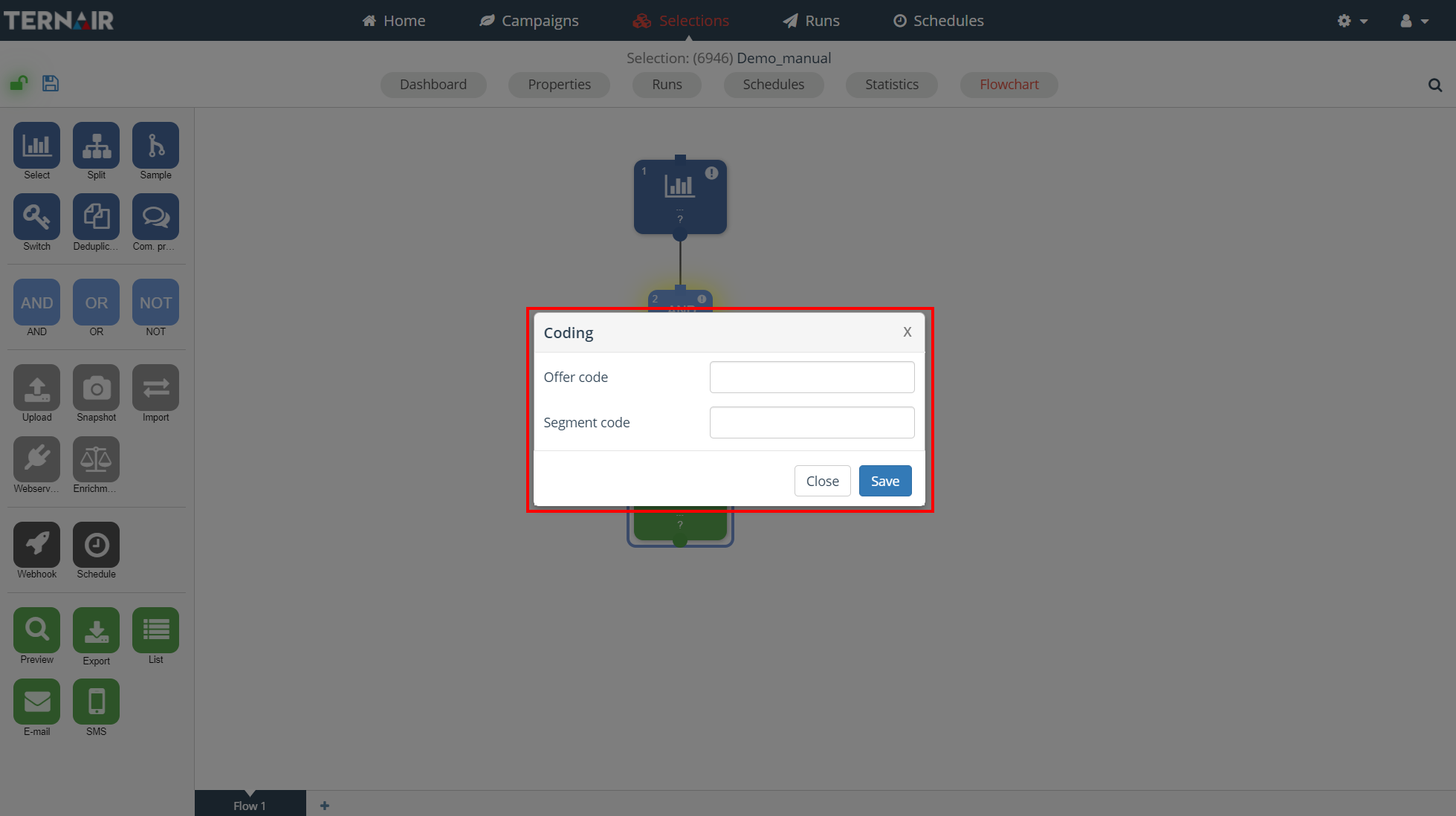The offer and segment code can be used, for example, to set up dynamic content. When contacts are created, the prepared offer and segment code are registered in Ternair.