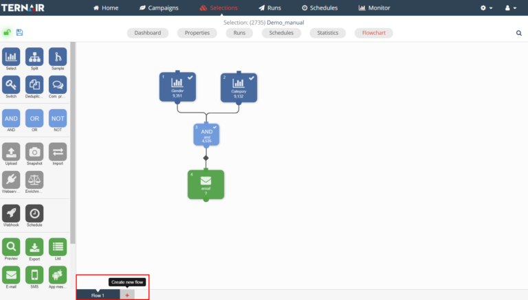 Click the plus symbol '+' to add a new flowchart to the current selection. All flowcharts have the same functionality.