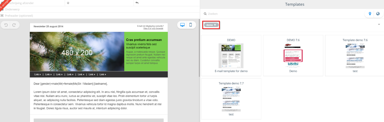 Filter e-mail templates, snippets and user-content based on tags.