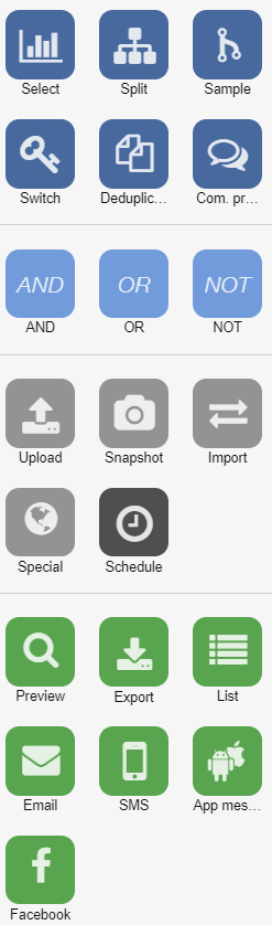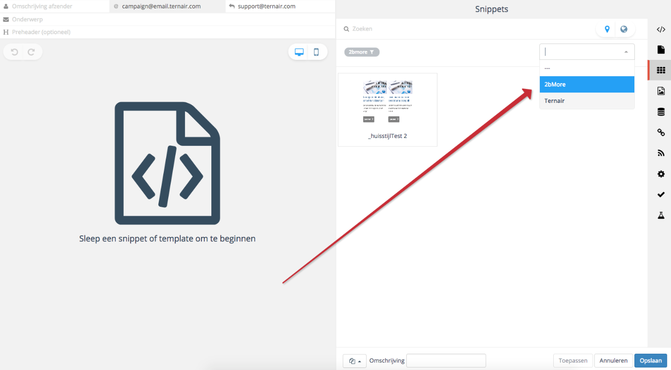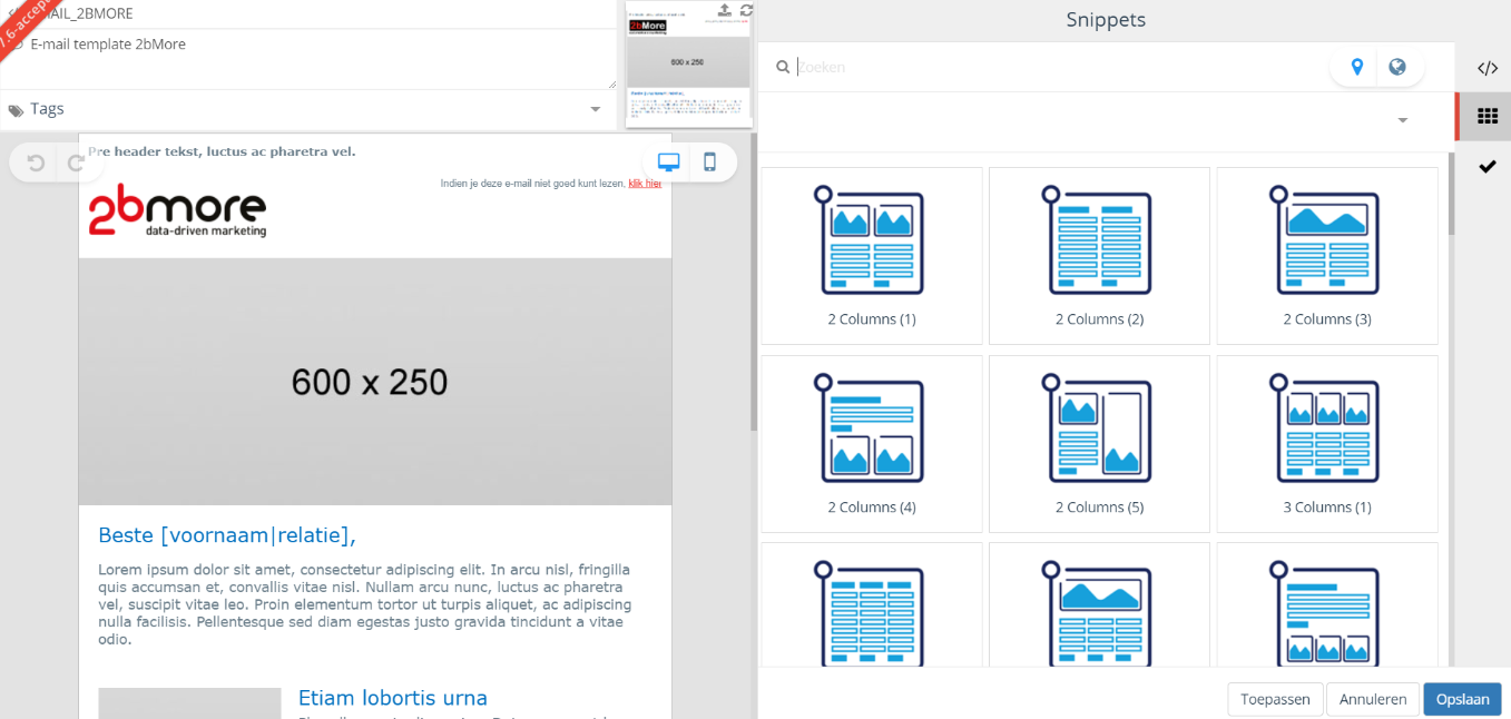 The design for building templates (e-mail and landing pages) is adapted to the design of the e-mail block. In addition, functionality has been added to build templates using snippets.