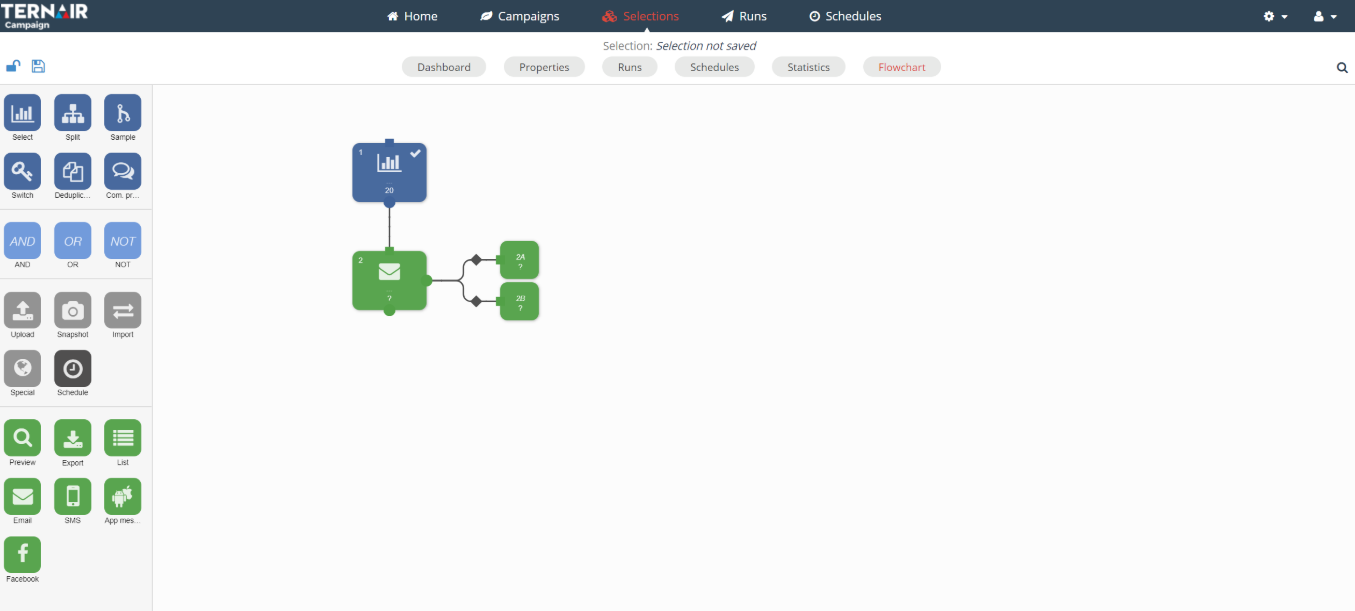 With the output option “A/B testing” an A/B test can be created and automatically executed in Ternair.