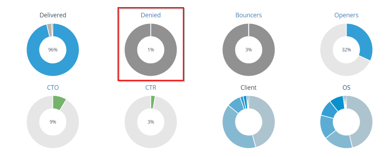 Donut containing “Denied” is added to the e-mail statistics. This donut displays the number of e-mails that have not been send.