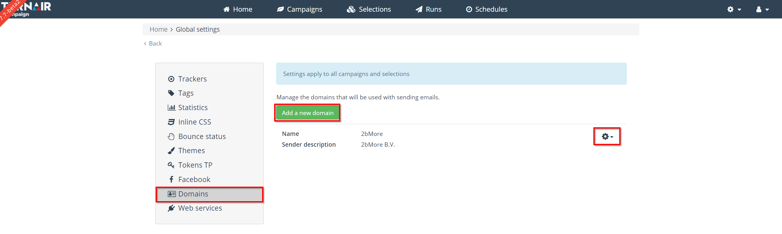 N.B.: a new or edited e-mail domain is only applied in new e-mail block(s).