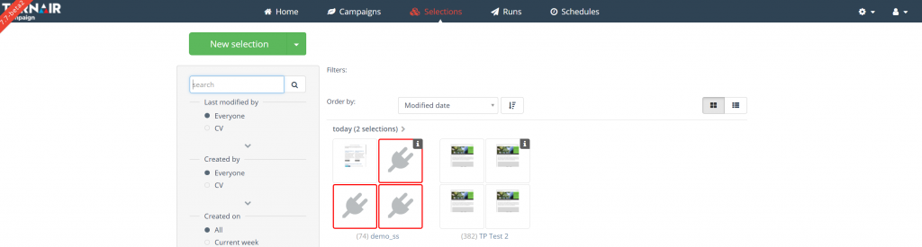 If a run results in an error, this is shown visually in the runs and selections overview.