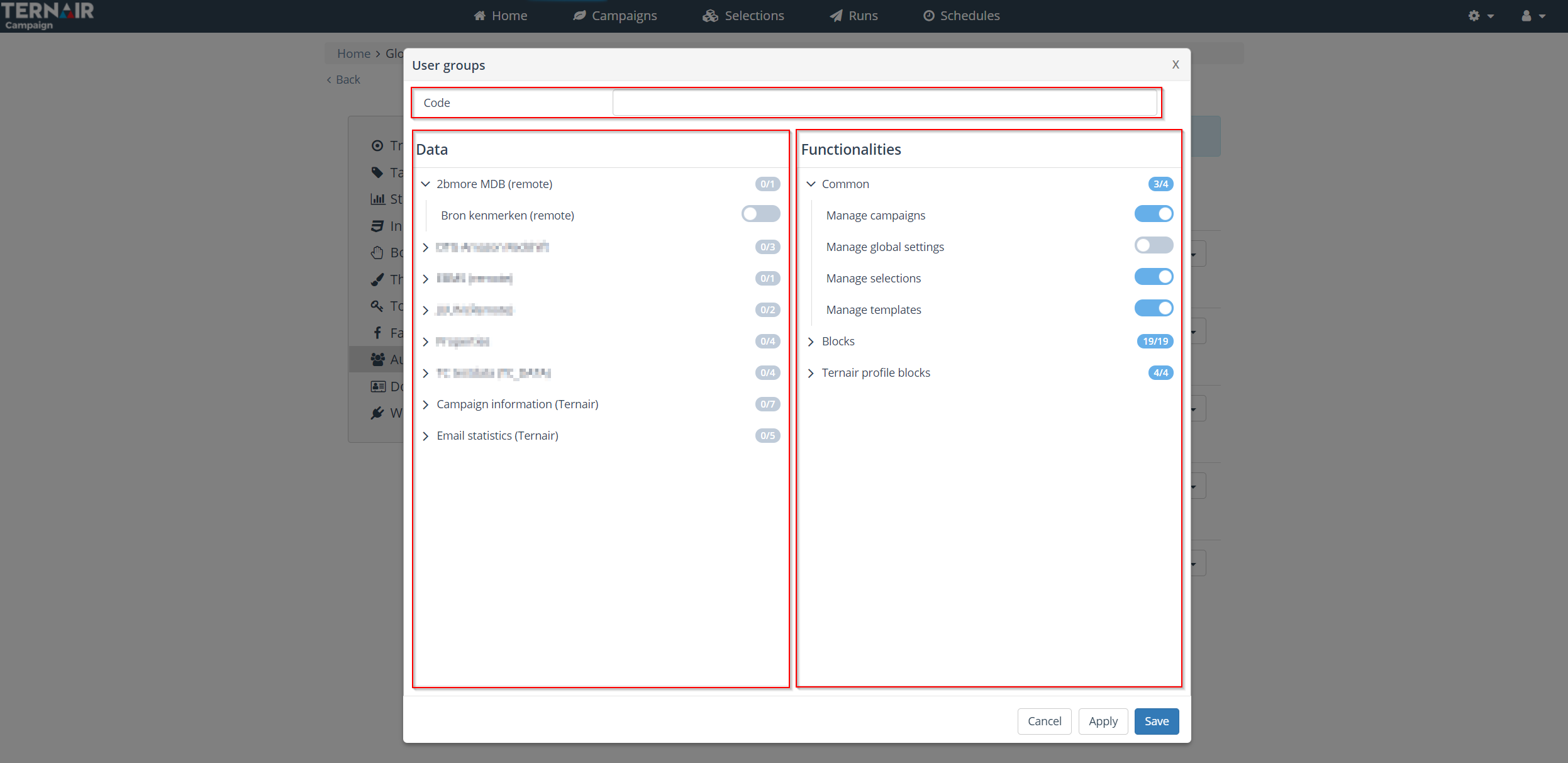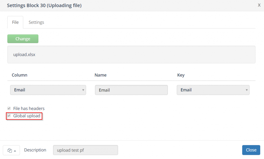 Global uploads are available in order to use data from an external file in Ternair Campaign. A successfully global uploaded file can be used as source in other selections.