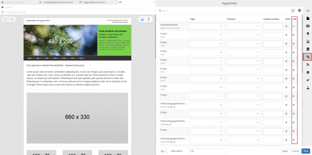 The options for A/B testing have been extended. It is possible to include or exclude hyperlinks when determining a winner based on clicks.