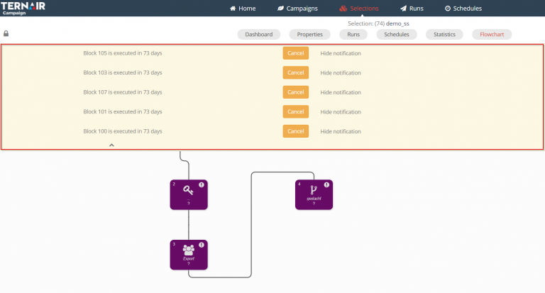 The layout of multiple schedule notifications in Ternair Campaign is re-organized.