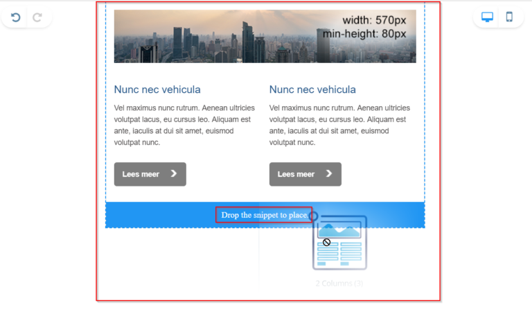A blue dotted (out)line of the drop zone is shown when dragging an item (snippet, RSS message, image, etc.) onto the worksheet.
