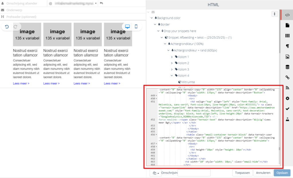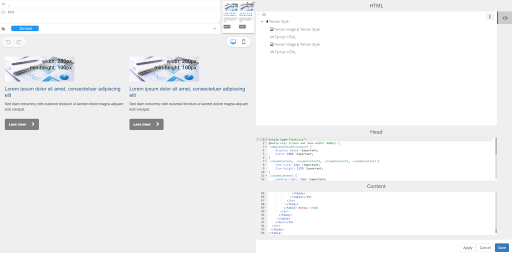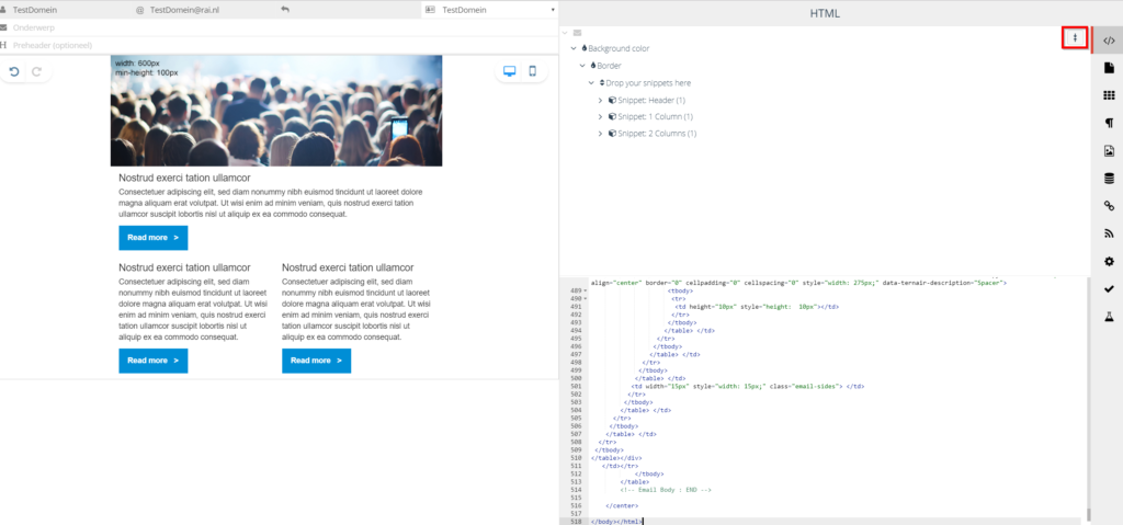 The design for building snippets is adapted to the design of the templates for e-mail and landing pages.