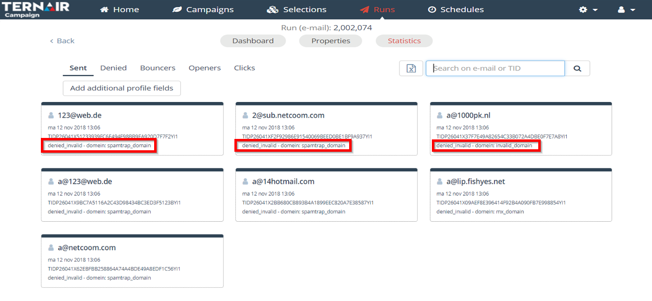 Suppression list has been extended with domain function e.g. spamtrap, invalid. In the e-mail statistics more detailed domain information is available.