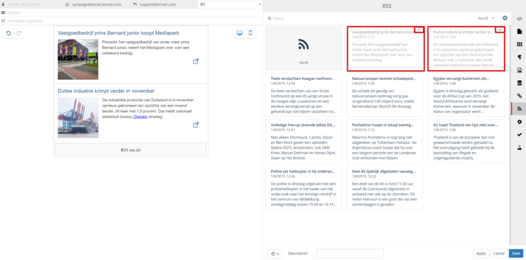 Once you include an RSS message into your message, this is shown visually in the RSS overview with a check mark