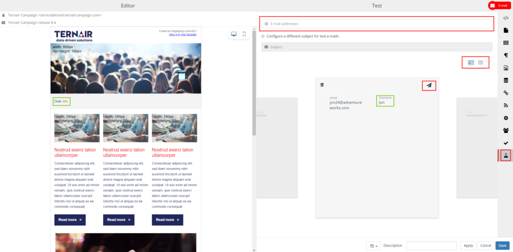 Improved e-mail test sending