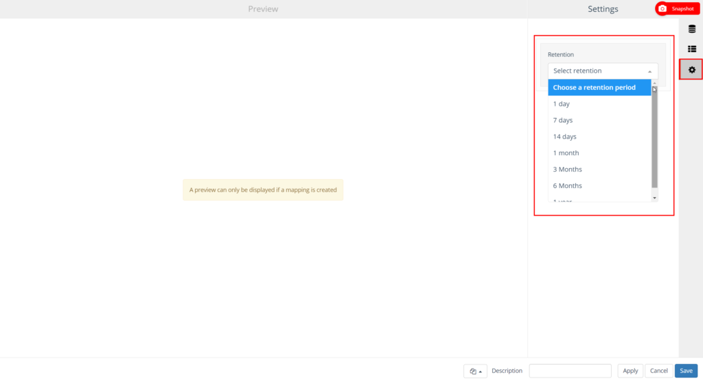 Snapshot has been extended with a required retention setting. The retention determines which period the snapshot data is available within Ternair Campaign.