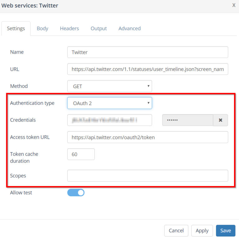 Webservice block can now connect to OAuth2 services used by i.e. twitter, facebook and LinkedIn