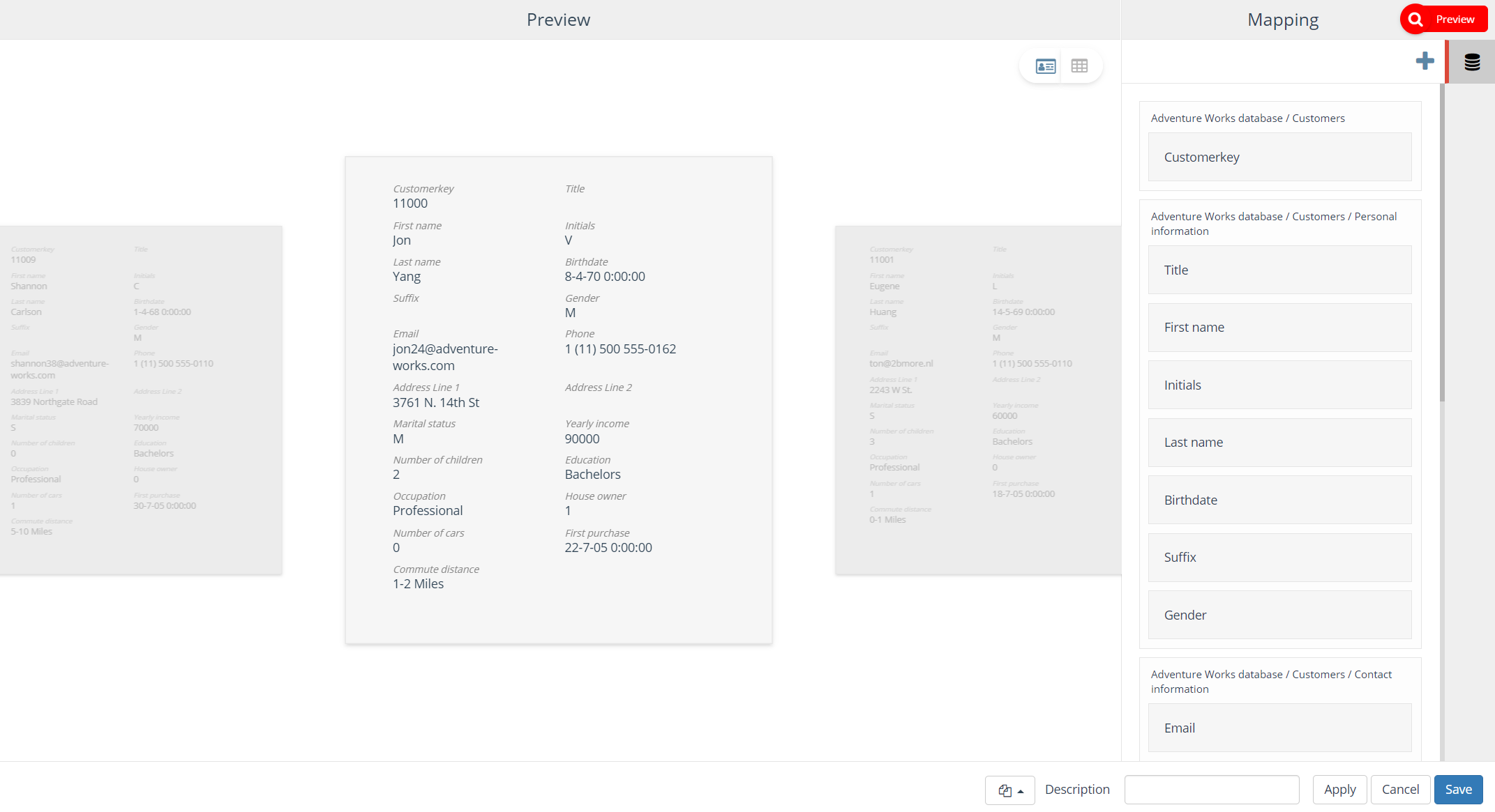 Furthermore, you can now easily scroll through your sample data but still have the opportunity to view it in tabular style.