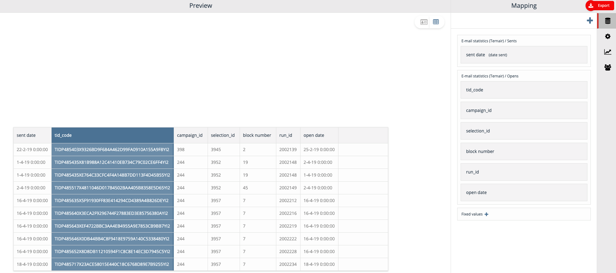 Columns in the Export and Preview block can be ordered by dragging columns to their position in the data preview on the left-hand side of these blocks.