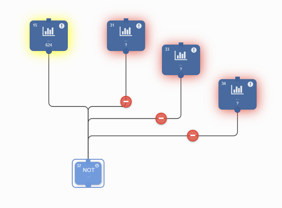 All connections (lines) used for exclusions in NOT blocks are easily recognizable thanks to the exclusion icon (