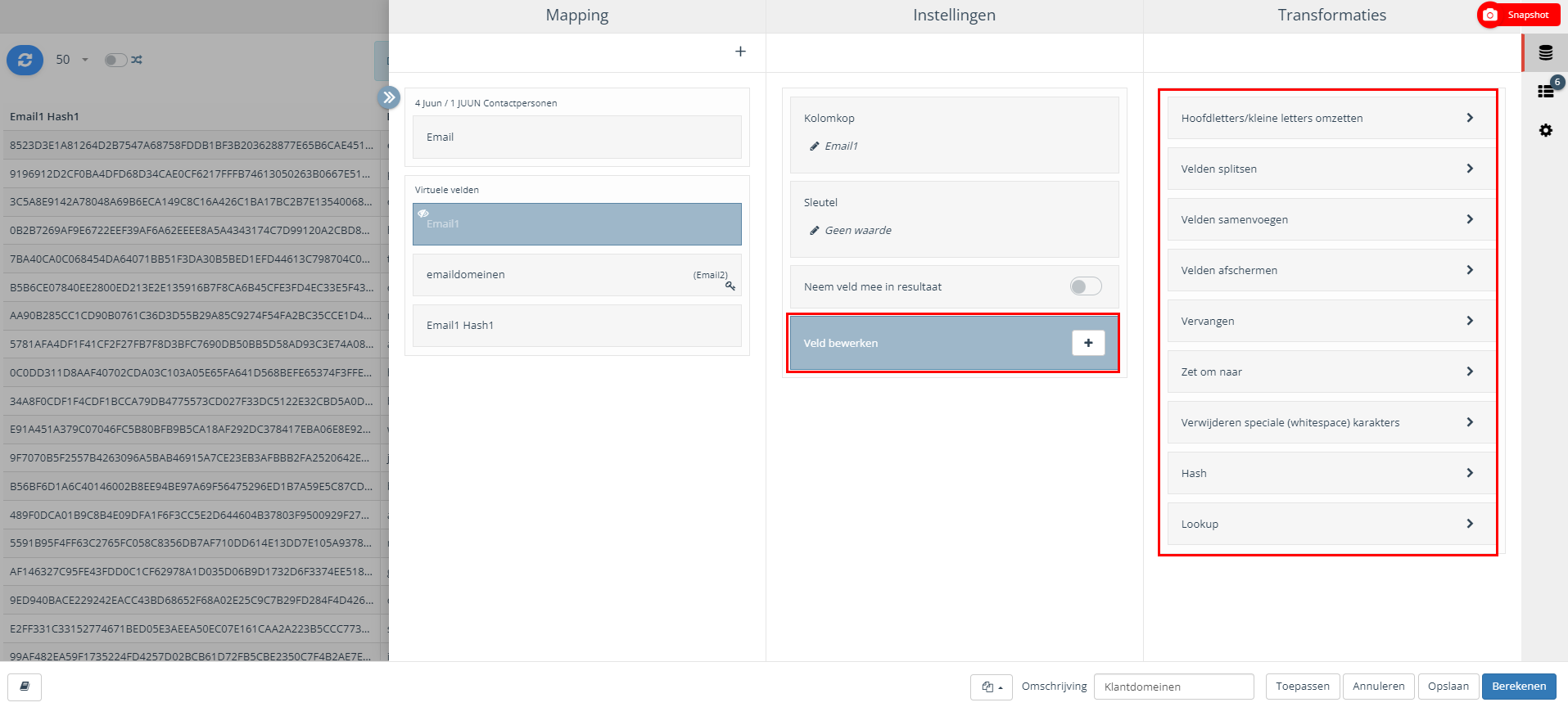 This functionality allows you to share confidential data with third parties without sharing the original values. We use SHA256 hashing for this purpose, where the same value always results in the same hash.