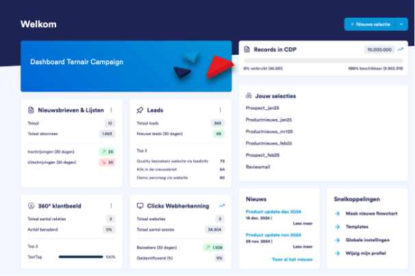 The updated homepage in Ternair Campaign is now available. This new page provides instant visibility into newsletter and list developments, leads, website clicks and 360 degree customer views. We are confident that this update will support you even better in achieving your marketing goals.