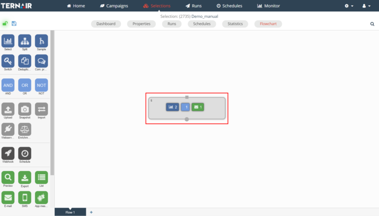 De icoontjes in de groep geven aan welk type blok(s) in de groep is/zijn opgenomen en het aantal blokken per type. In het bovenstaande voorbeeld bevat de groep een selectie blok, een verbindingsblok en een e-mail blok.