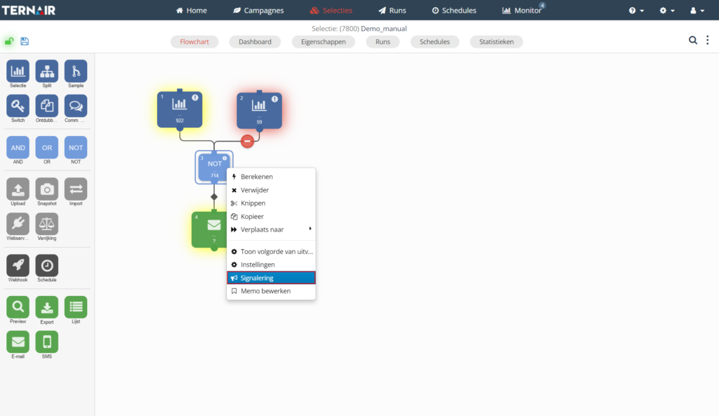 Klik met de rechtermuisknop op het selectieblok en selecteer ‘Signalering’ om een signaleringswaarde toe te voegen.